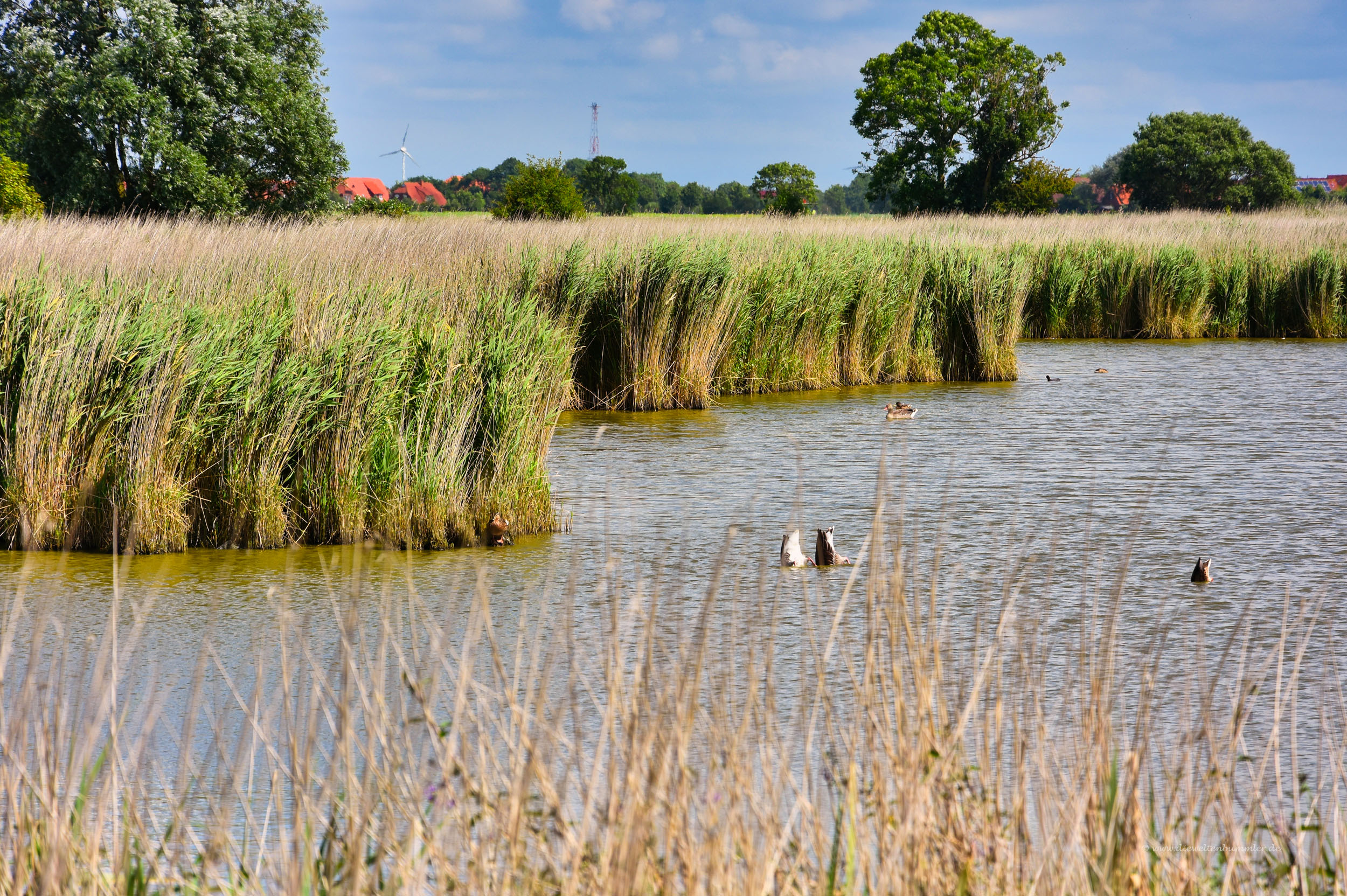 Das ist keine ganz so kurze Strecke. Rund vier Kilometer je Richtung muss man dafür einplanen. Die Strecke kann man natürlich auch gut mit dem Fahrrad bewältigen. Unterwegs kommt man einem kleinen Binnengewässer vorbei, an dem von einem kleinen Holzhäuschen aus Vögel beobachtet werden können.