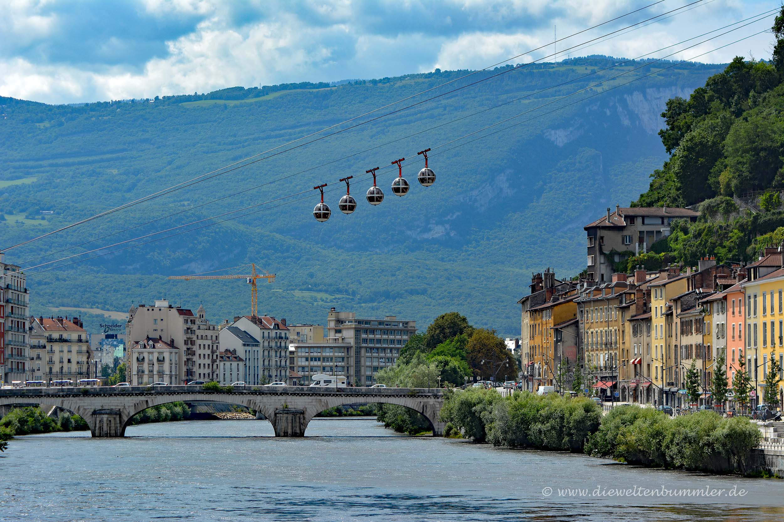 Wiederum ein Jahr später war ich mit dem Wohnmobil in den Alpen unterwegs und fuhr natürlich auch in den französischen Alpen umher. Die dortige Partnerstadt von Essen kennt man unter dem Namen Grenoble. Hübsches Städtchen mit einer knuffigen Seilbahn, die dort über den Rhône-Zufluss Isère pendelt.