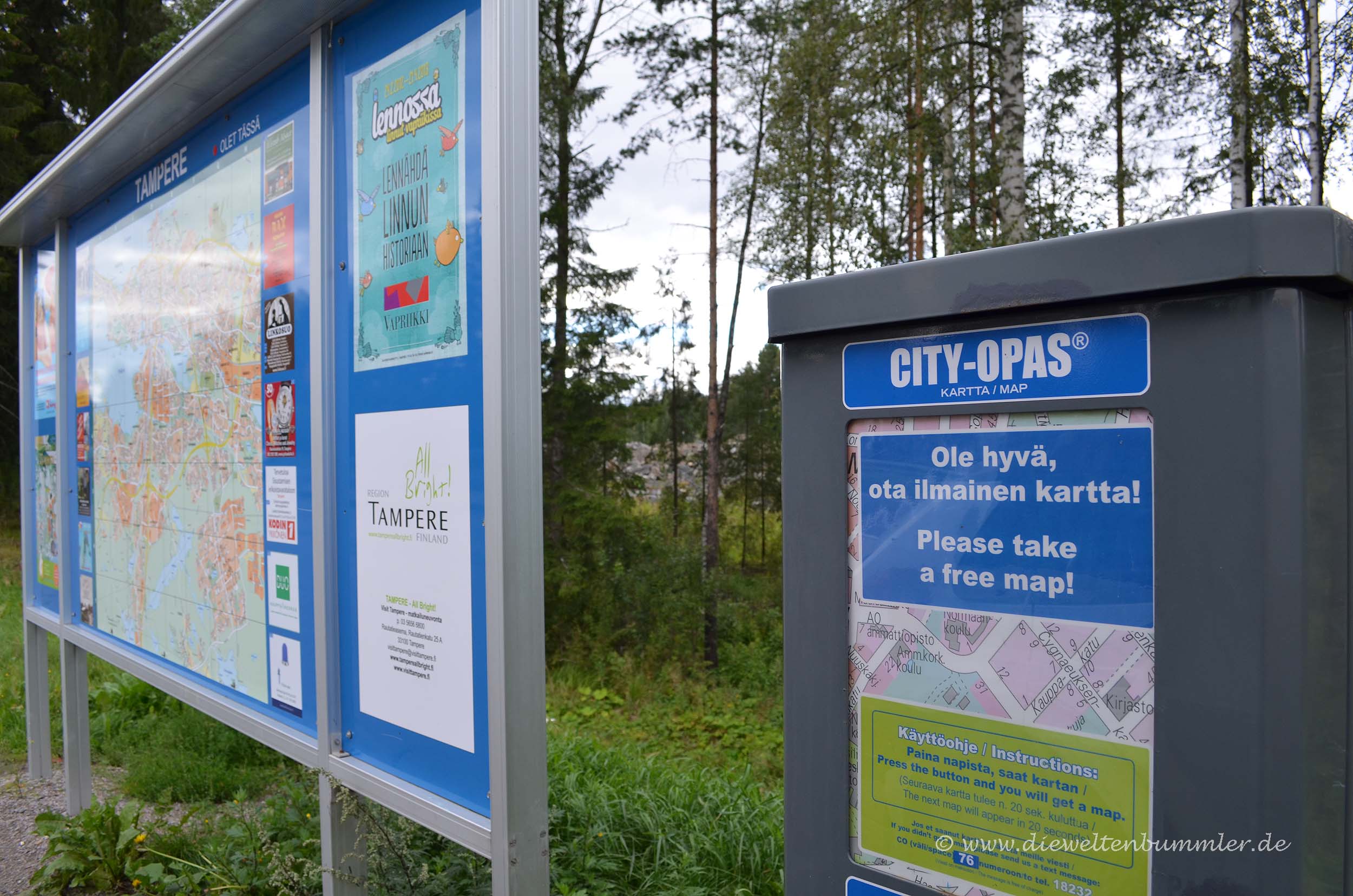 Zwei Jahre später reiste ich mit dem Wohnmobil zum Nordkap und fuhr über Finnland wieder zurück nach Essen. Dabei steuerte ich absichtlich durch Tampere, weil ich mir die Stadt mal anschauen wollte. Nun, Tampere ist nicht ganz so spektakulär und leider fehlte am Ortseingangsschild ein Hinweis auf die Partnerstädte der finnischen Stadt. Aber wenigstens gab es kostenlose Stadtpläne, wie das in Skandinavien häufig der Fall ist.