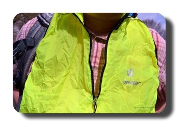 Ansonsten gibt es noch zwei sehr kleine Staufächer für Schlüssel oder Kleingeld in den Hüftgurten, selbstverständlich Reflektoren und – ebenfalls neu für mich – einen Regenschutz für den Oberkörper. Ich denke, der erklärt sich besser im Video: