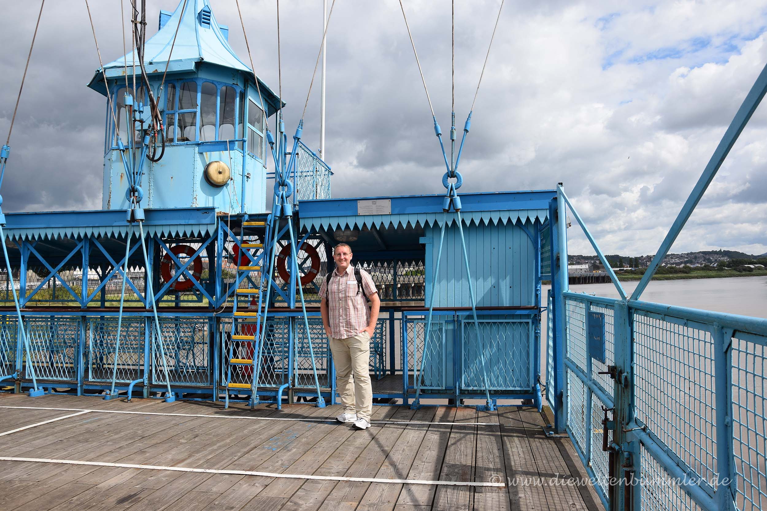 Pauschal könnte man also sagen, dass ich Verkehrsmittel meide, in denen ich mich in der Luft befinde, sei es nun fliegend oder seilgebunden. Aber eben nur „könnte“. Denn in Wales gibt es ein Transportmittel, bei dem man sich ebenfalls schwebend fortbewegt: Die Newport Transporter Bridge. Und genau diese hat mir einen Heidenspaß bereitet.