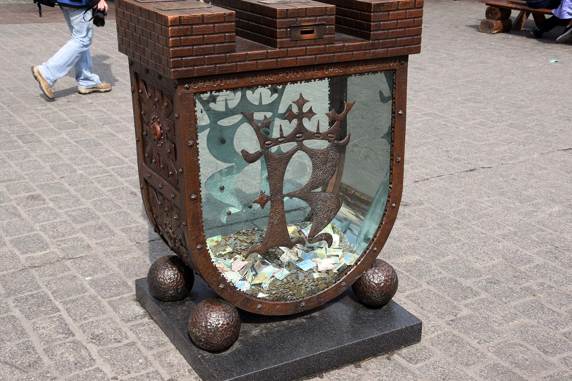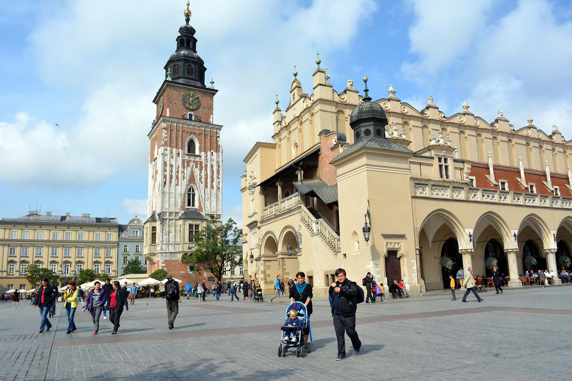 Der Rynek gilt als der größte Marktplatz Europas und wird von drei Bauwerken dominiert. Zum Einen wäre da der ehemalige frei stehende Rathausturm in der südwestlichen Ecke des Platzes. In unmittelbarer Nähe steht eine Sparbüchse, in der man für die Denkmäler und Bauten spenden kann. In der Krakauer Bevölkerung hat es sich etabliert, dass man sich an eben dieser Spardose trifft, wenn man sich am Rynek verabredet – sonst würde man sich auf dem großen Platz unter Garantie verfehlen.