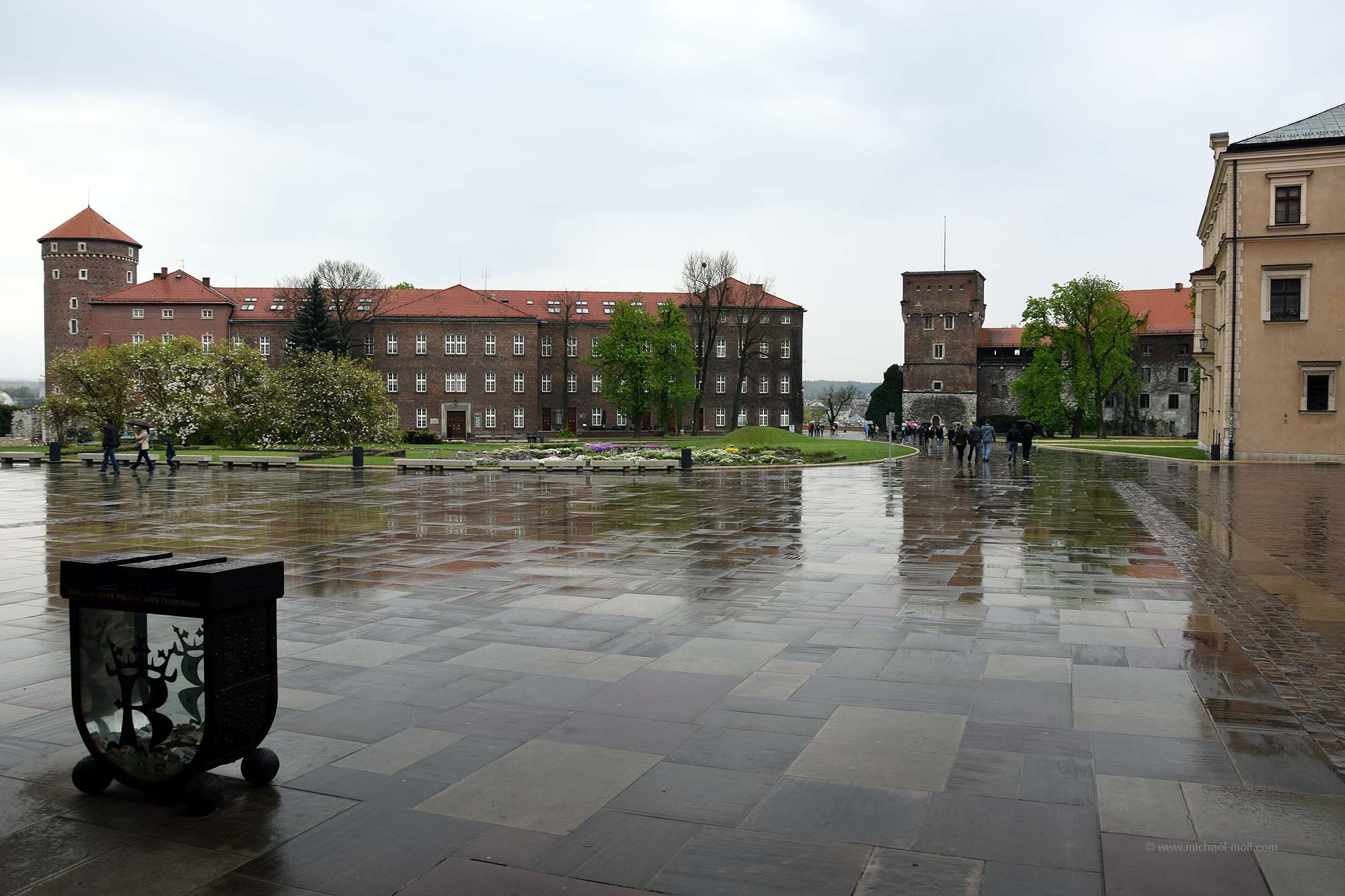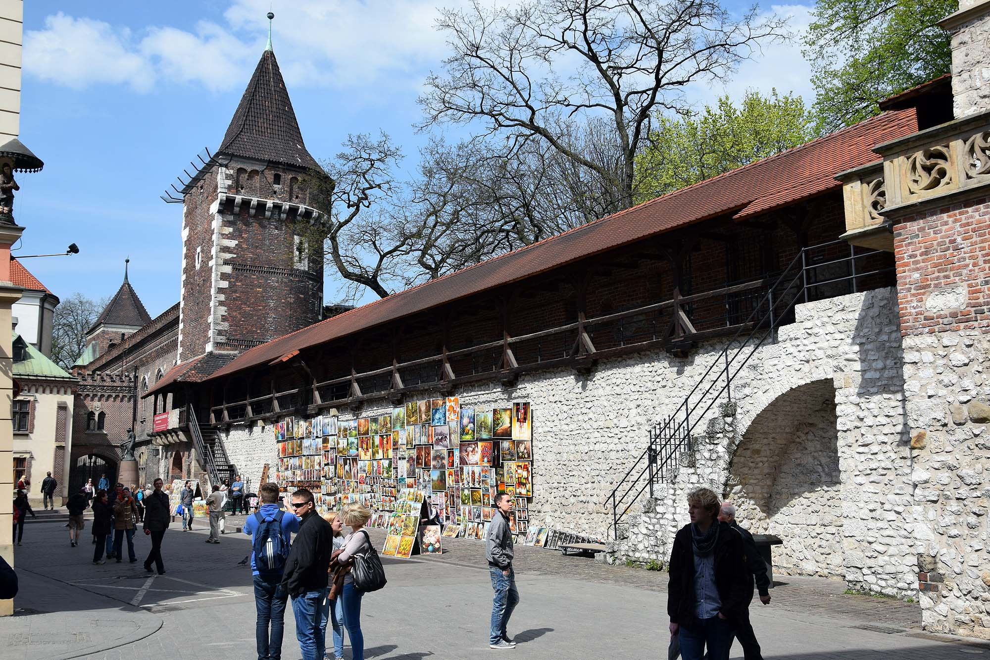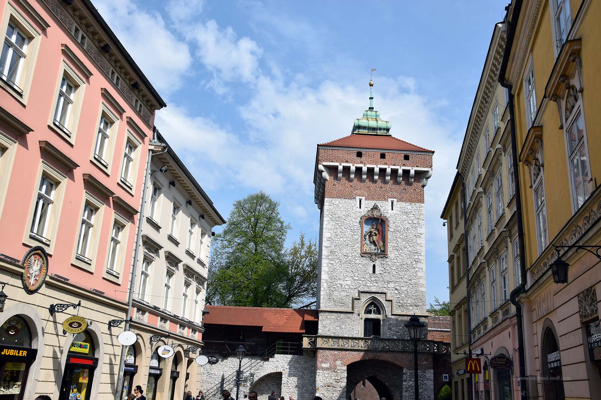 Durch die Ulica Floriańska verlässt man den Marktplatz und geht an zahlreichen Geschäften vorbei zum gleichnamigen, ehemaligen Stadttor, wo auf der linken Seite Maler versuchen, ihre Werke an den Mann zu bringen. Gleich dahinter befindet sich die größte erhalten gebliebene Barbakane Europas. Rechter Hand gelangt man in wenigen Minuten durch eine Unterführung zum Hauptbahnhof, der im März 2014 neu eröffnet wurde. Ich habe darüber bereits im Reiseforum geschrieben. Gleich nebenan lockt die Moderne mit einem riesigen Einkaufszentrum namens Galeria Krakowska, das sich von westlichen Shopping Malls in keinster Weise unterscheidet.