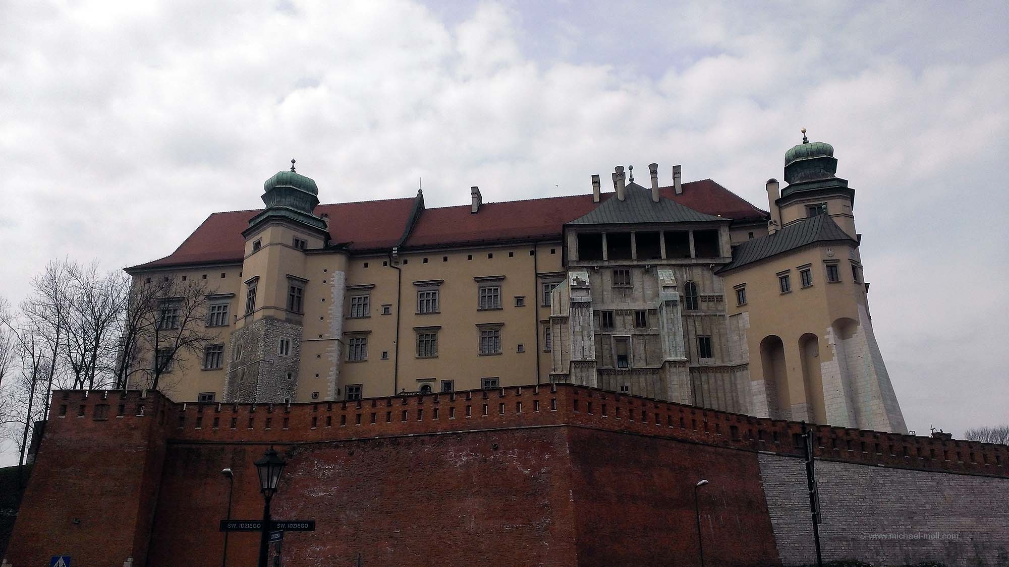 Zurück zum Rynek lohnt auf jeden Fall der Weg nach Süden und zwar über die Ulica Grodzka. Auch auf dieser Straße passiert man Restaurants, Souvenirläden und noch so einige weitere Kirchen. An ihrem Ende erhebt sich auf der rechten Seite dann ein weiteres Wahrzeichen der Stadt – die Wawelburg. Der steile Aufstieg lohnt sich nicht nur wegen des mächtigen Bauwerks und der dortigen Kathedrale, sondern auch wegen der Aussicht auf die Weichsel, die sanft an dem Schloss vorbei zieht. Unterhalb der Wawelburg gibt es übrigens noch eine Drachenhöhle mit einem feuerspeienden Drachen 😉