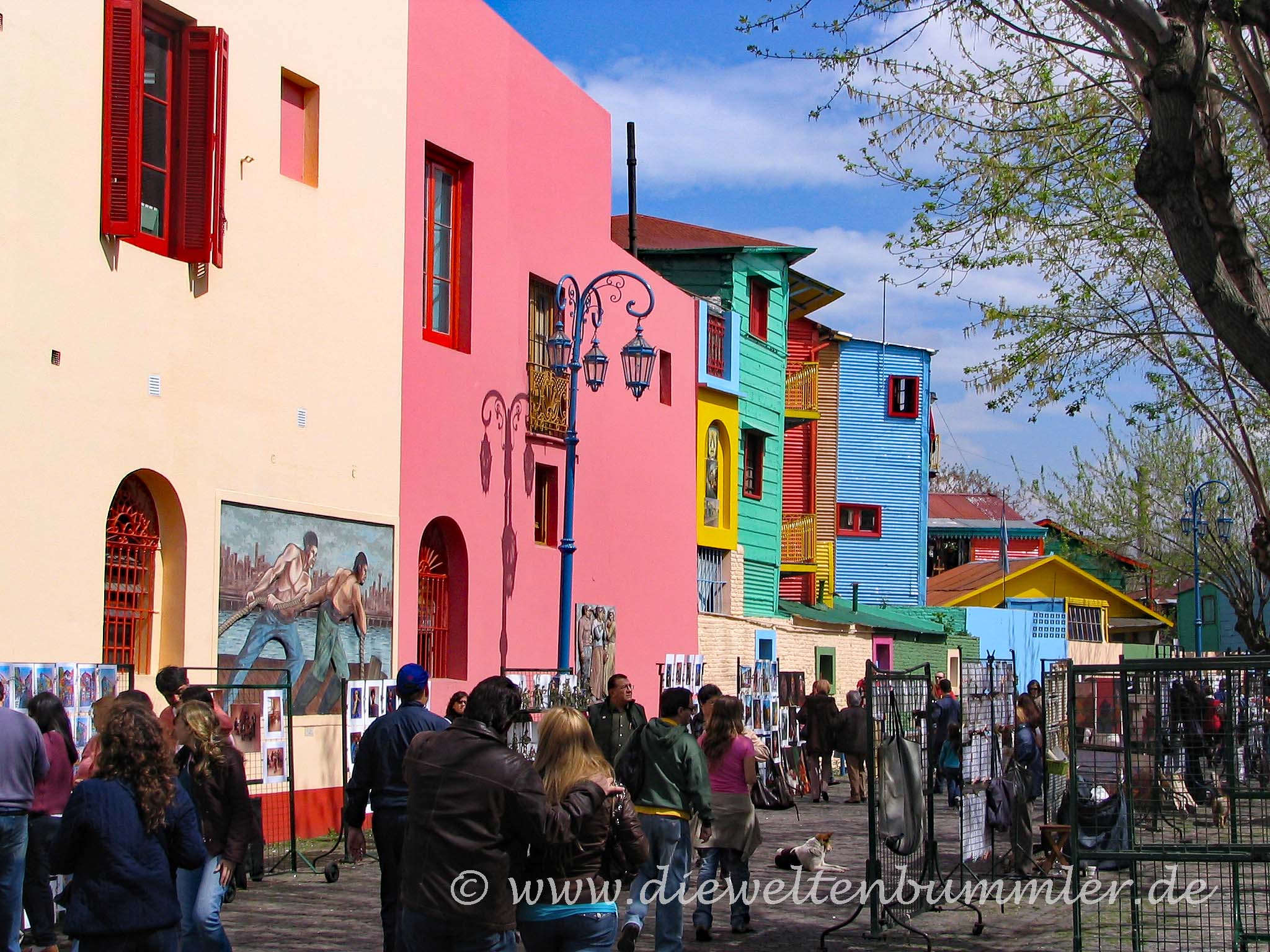 Das nächste „Muss“ in Buenos Aires ist von hier aus entschieden zu weit für einen Spaziergang. Denn um zur Caminito zu gelangen, muss man in den weiter südlich gelegenen Stadtteil La Boca. Die Caminito ist mit 100 Metern Länge eine sehr kurze Fußgängerzone. Sie ist bekannt für ihre farbenfrohen Fassaden und den Tango, der hier klassisch auf der Straße getanzt wird. Kein Wunder also, dass die Straße bei Touristen extrem beliebt ist und sich allerlei Straßenkünstler und Verkäufer hier angesiedelt haben.