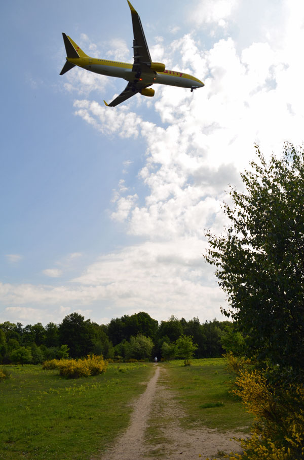 Flugzeug über einem Wanderweg