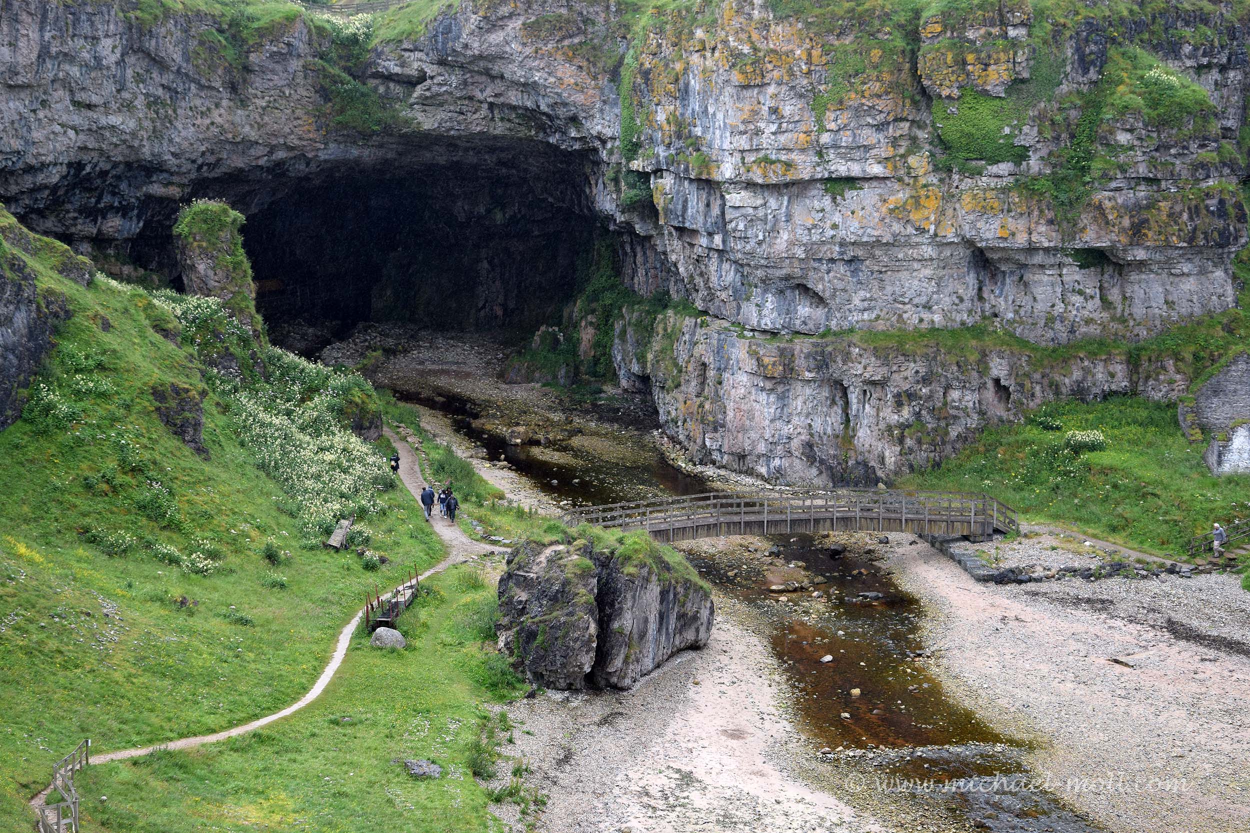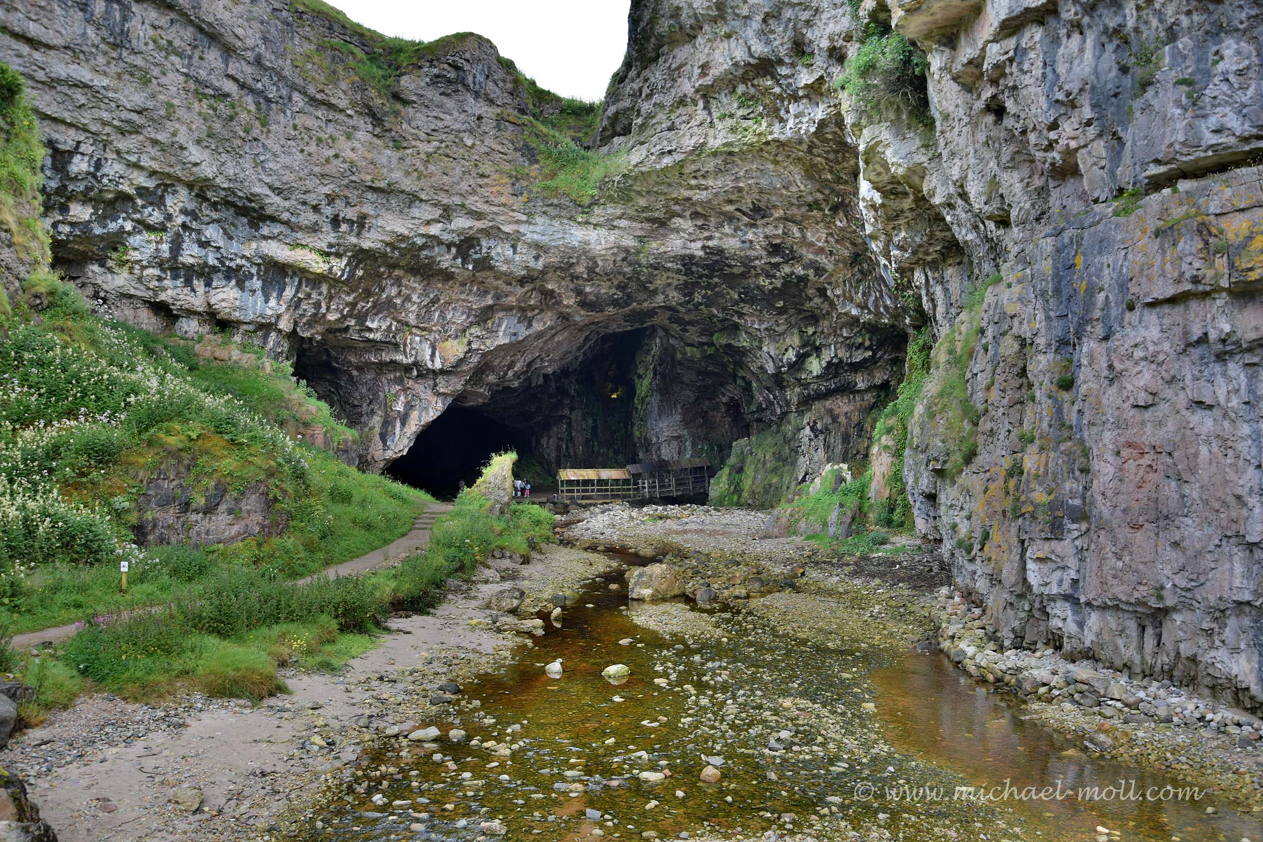 Dieses Wasser bildet den Bach, den wir zuvor auf der überdachten Brücke überquert haben und der die Höhle durch den Eingang verlässt. Wenig später mündet das Süßwasser des Bachs in das salzige Meerwasser vor der schottischen Küste. Nun bleibt nur noch die Frage, wo das Wasser eigentlich herkommt.
