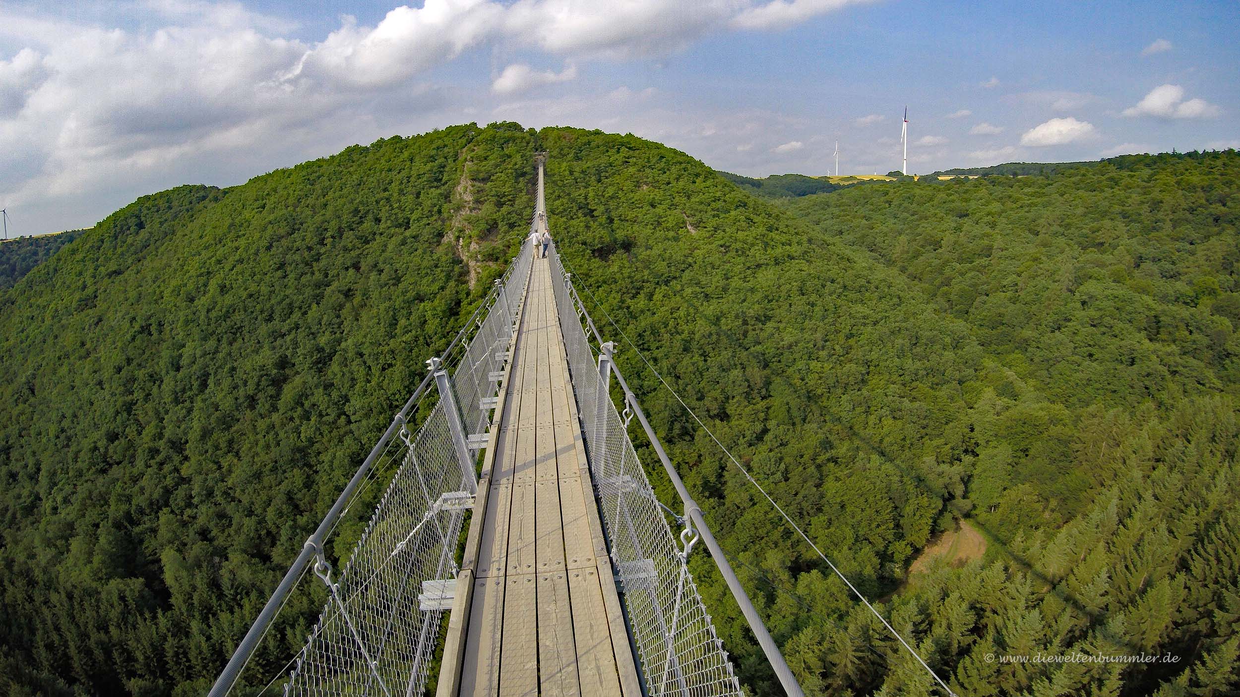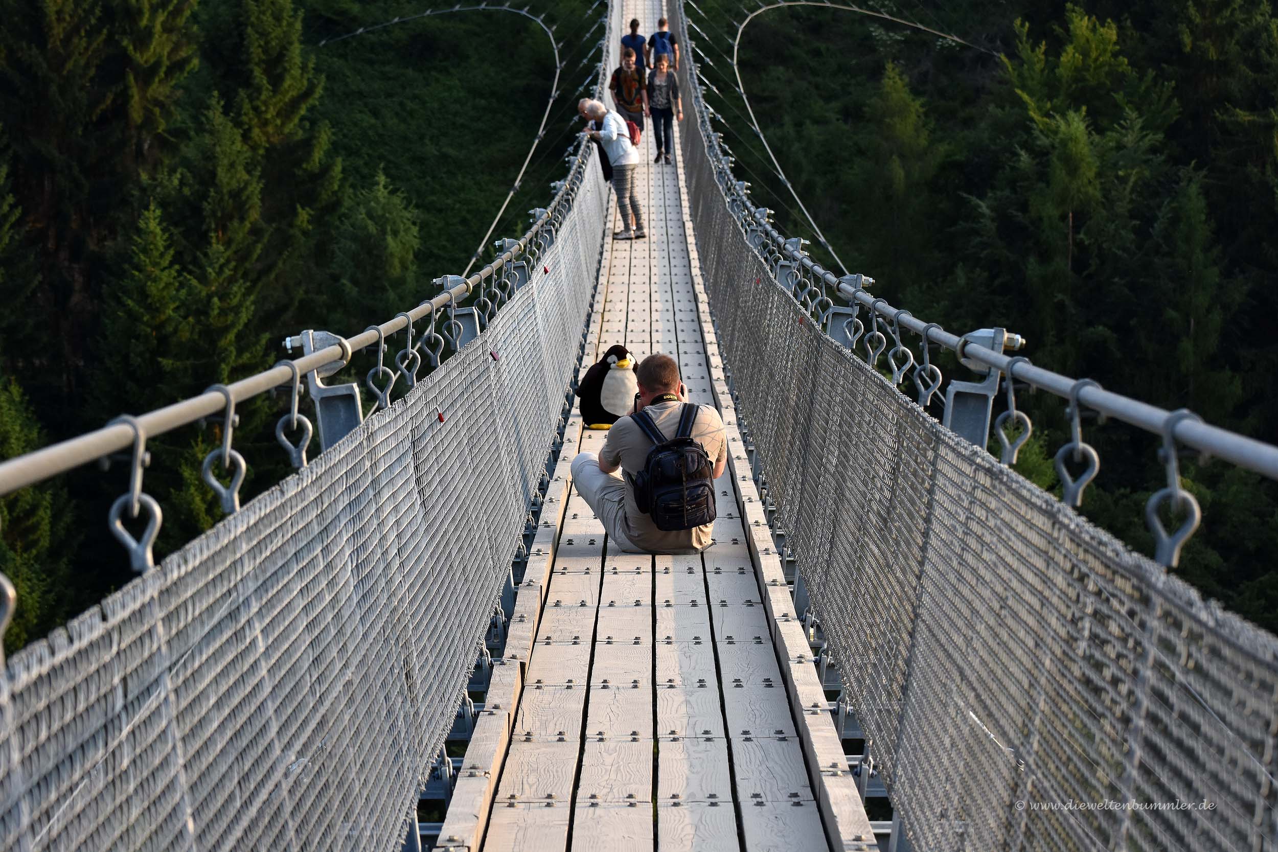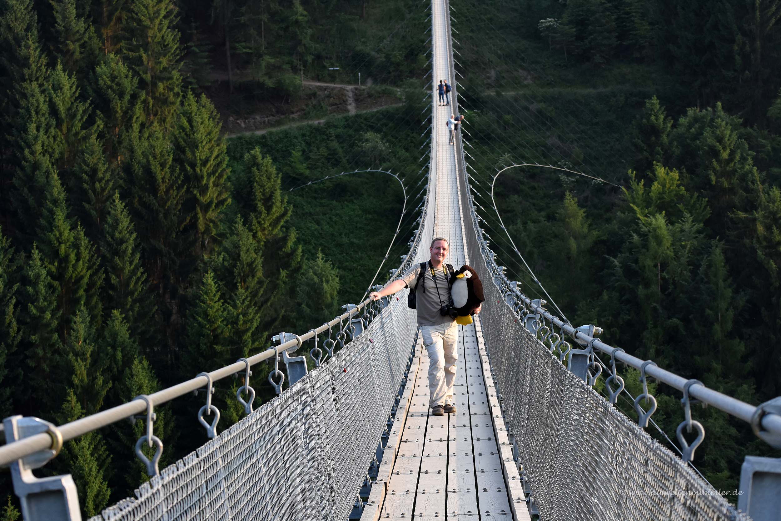 Aber ein paar Worte zu der Brücke: Sie wurde im Jahr 2015 gebaut und war zu dem Zeitpunkt die längste Hängeseilbrücke in Deutschland. Diesen Titel hat mittlerweile die Brücke an der Rappbodetalsperre im Harz. Da ich ja relativ oft im Harz unterwegs bin, werde ich mir die sicher auch noch anschauen.