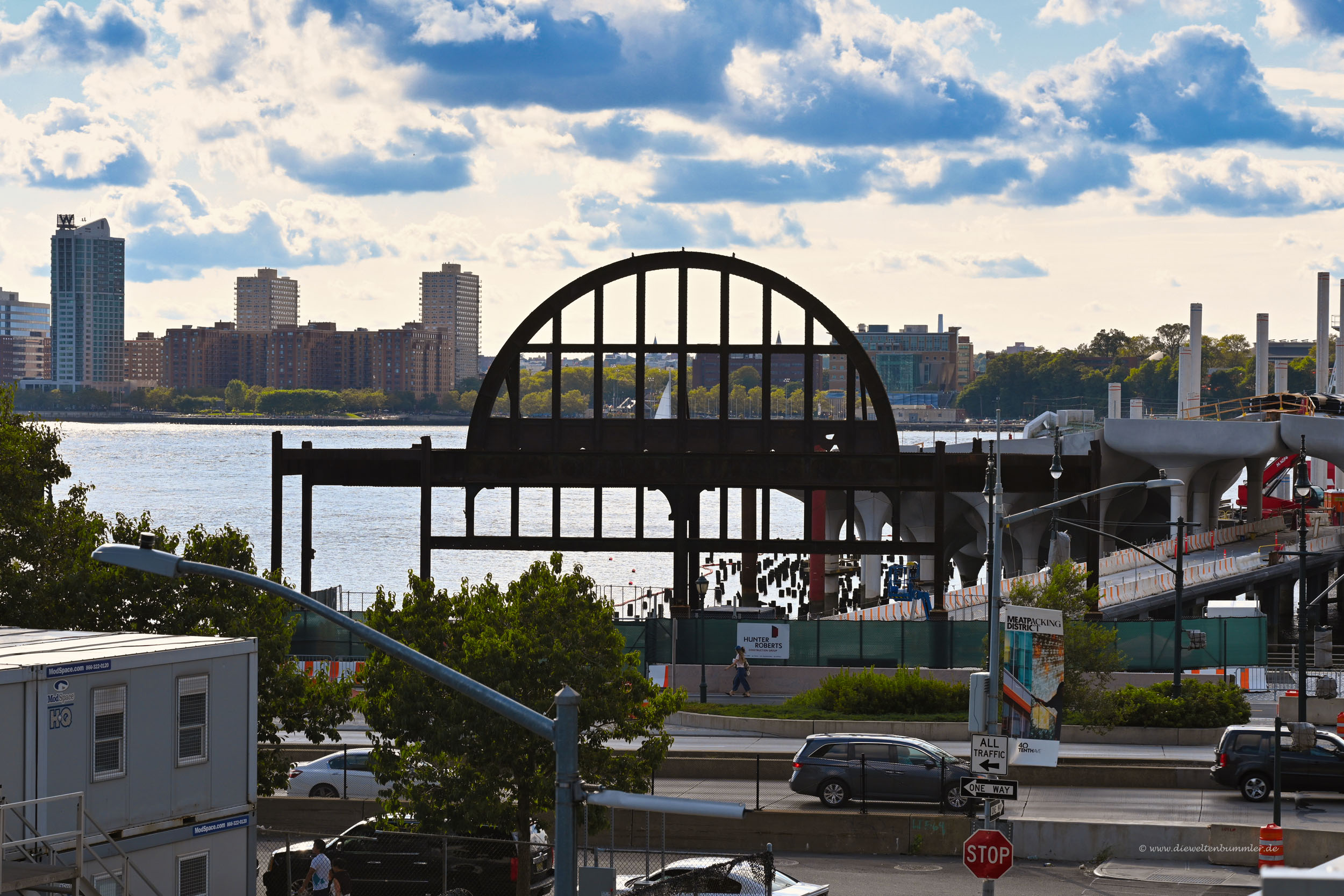Ich bin die Trasse einmal komplett abgelaufen und zwar von Nord nach Süd. Begonnen hatte ich also an den Abstellgleisen mit Blick auf den Hudson River und auf den Vessel.