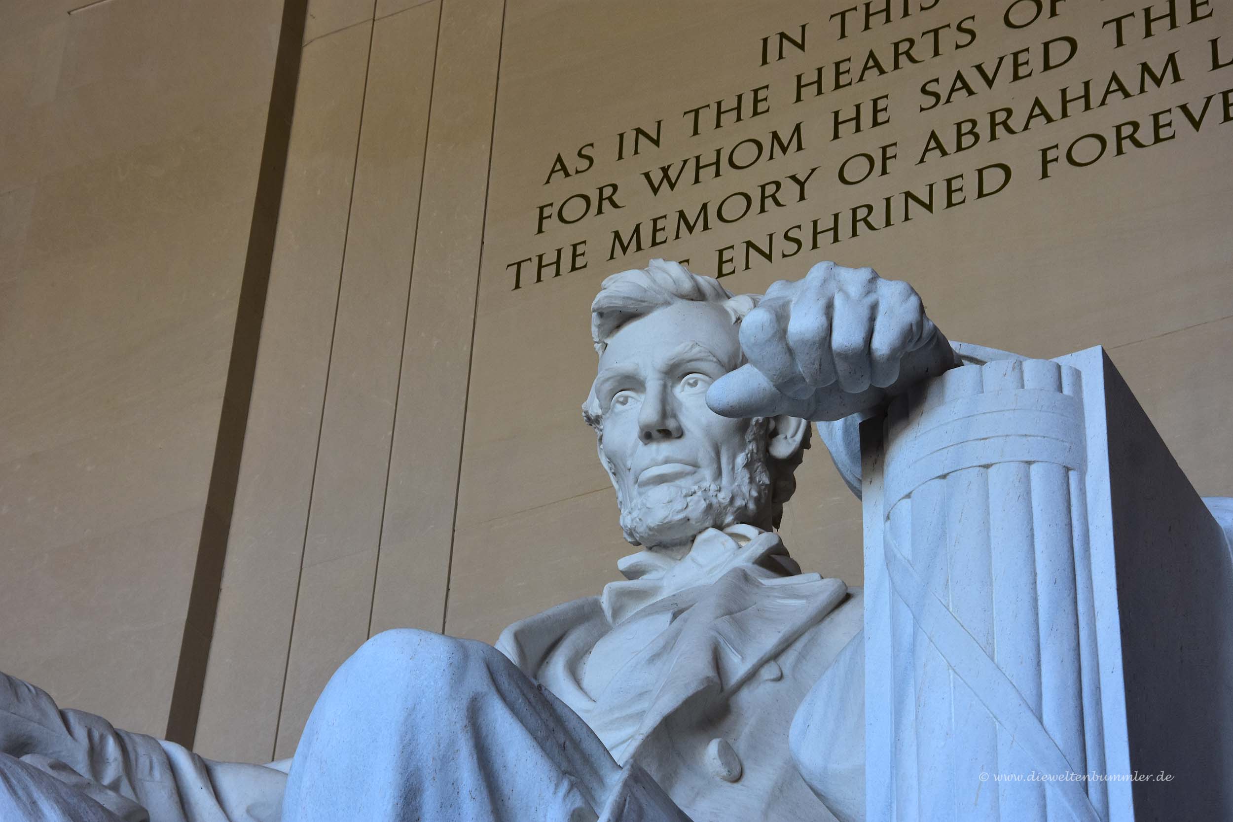 Den besten Ausblick darauf hat man von den Treppenstufen des Lincoln Memorial. Dabei steht unterhalb der berühmten, sitzenden Statue des ehemaligen Präsidenten Abraham Lincoln.