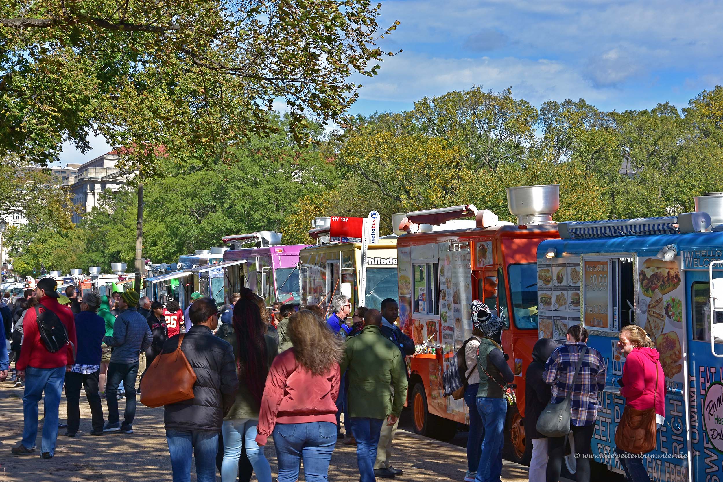 Östlich des Monuments verläuft der U.S.-Highway 1 von Süd nach Nord. Er ist der östlichste Highway des Landes und verläuft von Key West bis zum Bundesstaat Maine. Hier im District of Columbia ist er ziemlich zugeparkt mit einer langen Reihe von kleinen Hot Dog-Wagen. Es wirkte auf uns ein wenig wie die Freßmeilen auf der heimischen Kirmes.