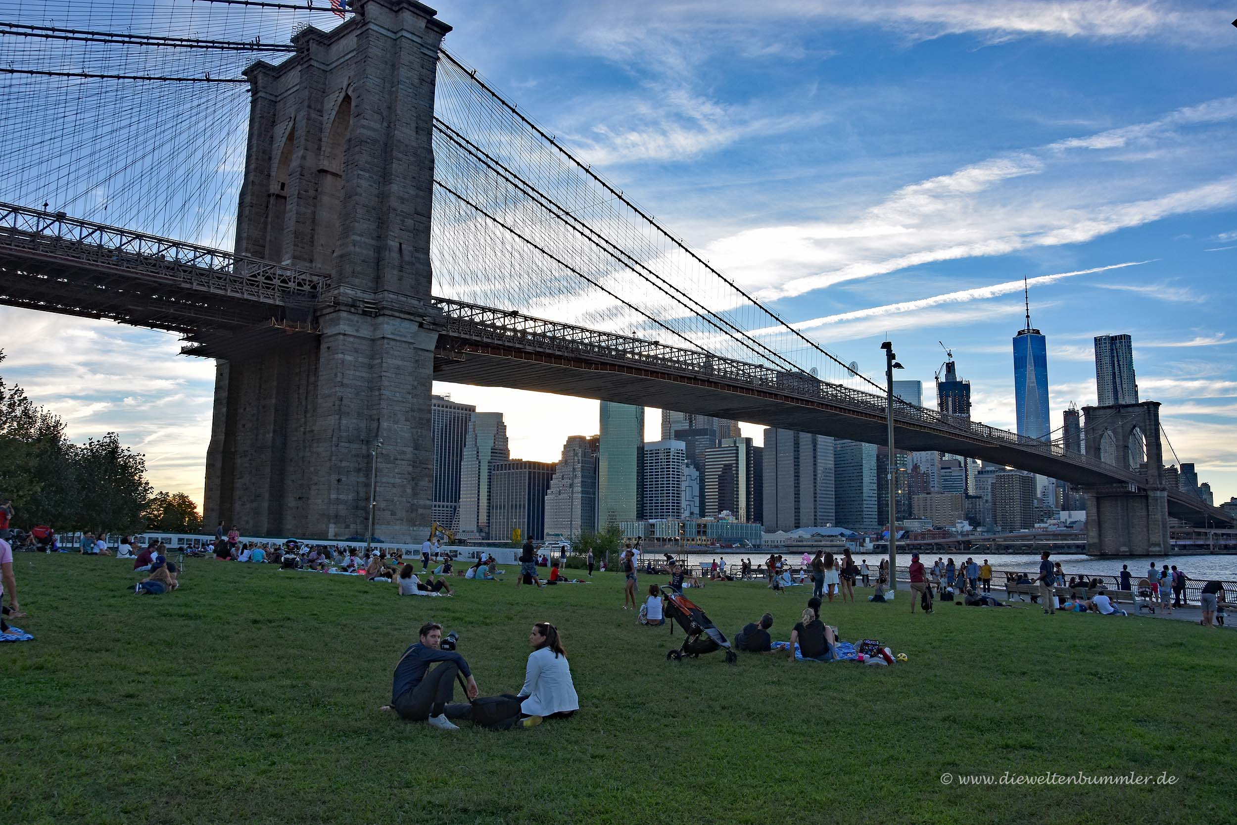Der Park ist besonders in den Abendstunden beliebt, wenn die Sonne untergeht. Diese verschwindet nämlich hinter der Skyline von Manhattan, auf die man von dort aus blickt – inklusive der Brooklyn Bridge.