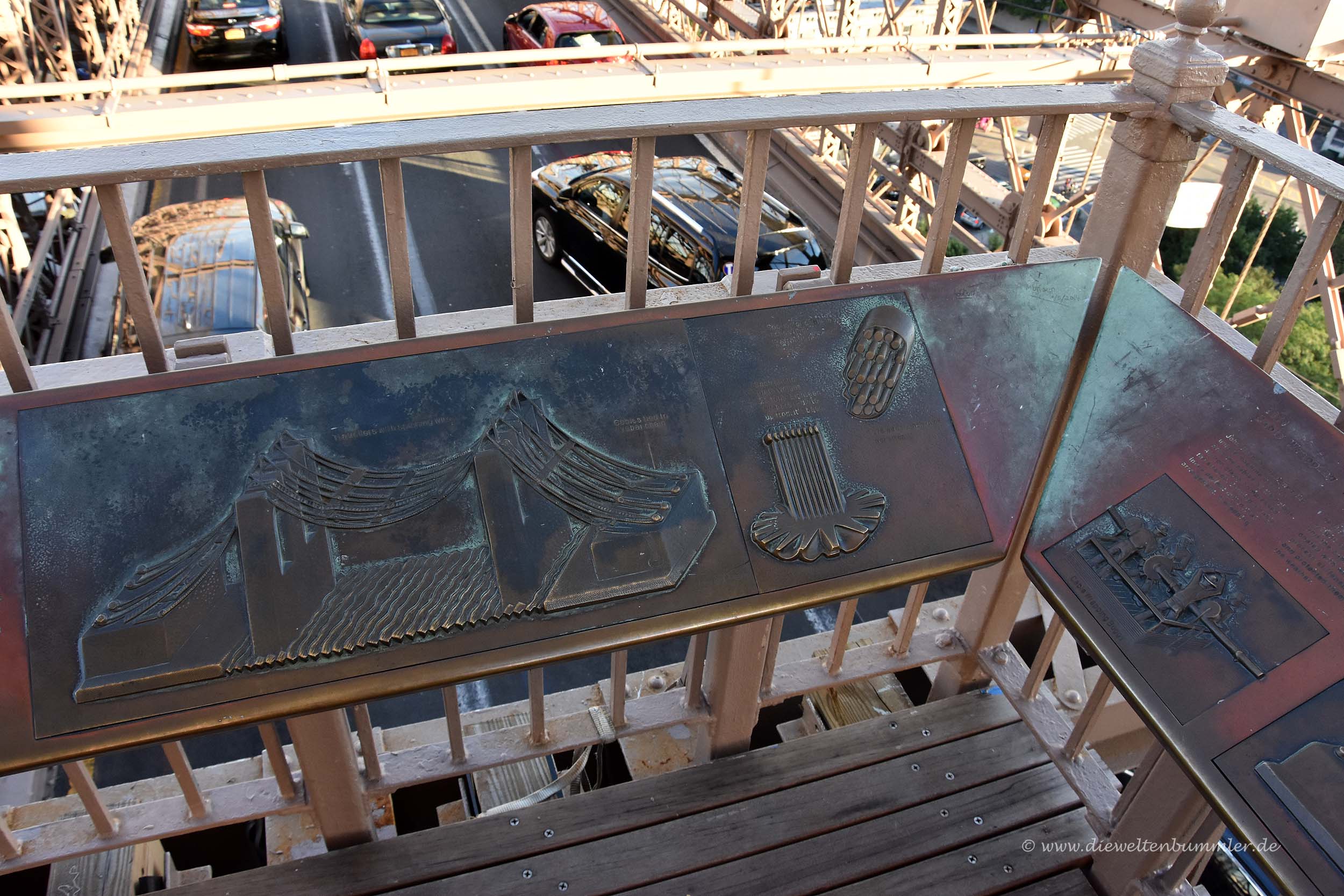 Wir haben die Brücke zum ersten Mal von Manhattan aus betreten. Dafür gingen wir auf der Frankfort Street bis zu einem Treppenaufgang, durch den wir direkt auf die Brooklyn Bridge Promenade gelangten – so heißt der Rad- und Fußweg offiziell.