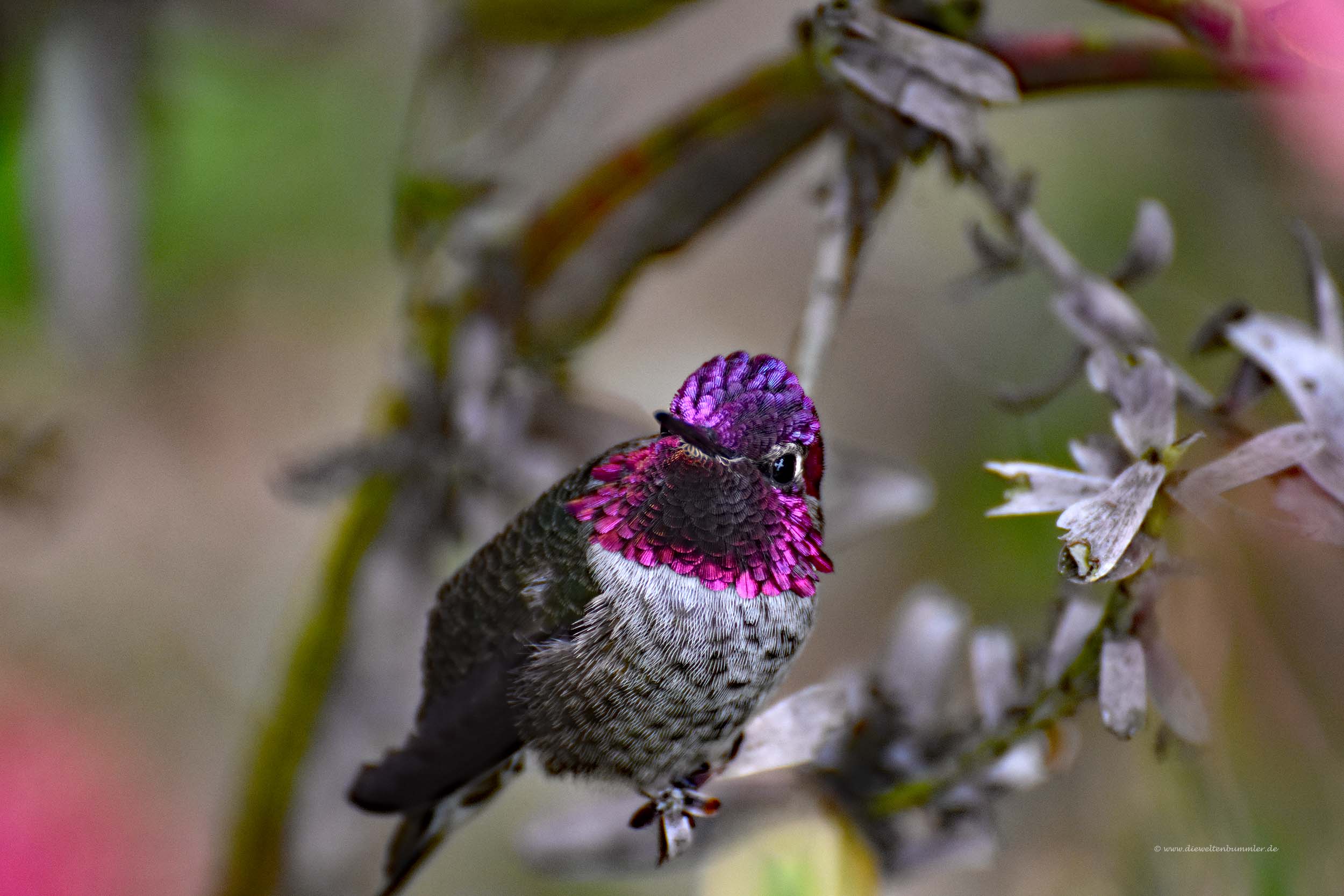 Eine schöne Sache entdeckten wir aber gar nicht im Zusammenhang mit der Brücke, sondern in einem Gebüsch gleich neben uns. Dort hockte nämlich ein Kolibri und ließ sich geduldig von uns fotografieren. Kein anderer Tourist schaute auf den kleinen, sehr schönen Vogel. Denn alle anderen Besucher richteten ihren Blick auf die Golden Gate Bridge. War für den Kolibri vielleicht auch besser so.