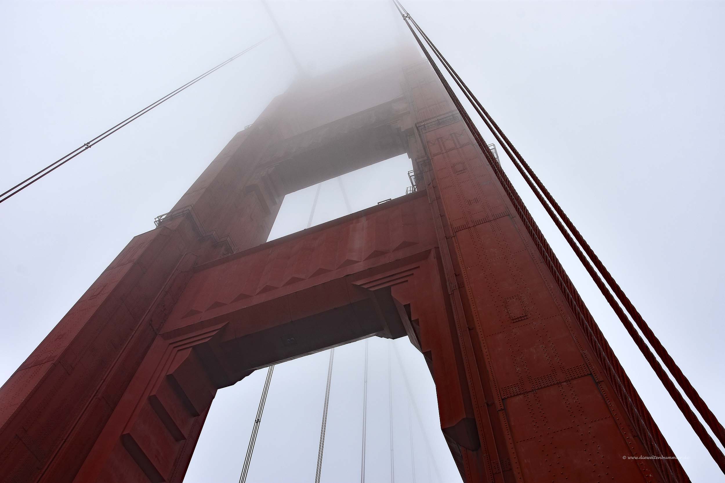 Also, es war neblig. Das sieht man ja deutlich auf den Bildern. Tragischerweise hielt sich der Nebel tatsächlich nur im Bereich der Brücke auf. Weiter im Osten, in San Franciscos Downtown herrschte gleichzeitig blauer Himmel und klare Sicht.