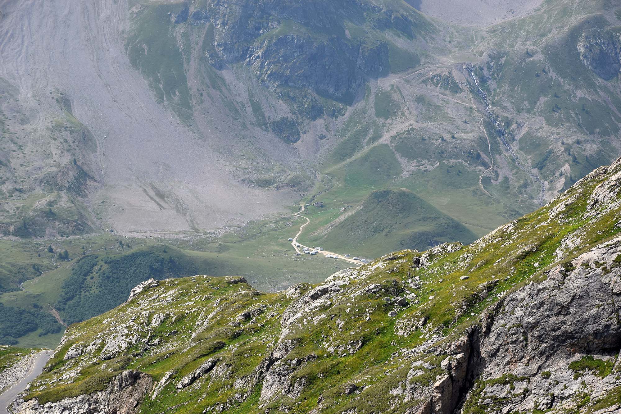 Der Col du Galibier ist einer der Pässe, auf dem es außer einer Rundumsicht nichts gibt – kein Hotel, kein Restaurant, kein Souvenirladen. Lediglich unterhalb des Passes an den Tunneleinfahrten gibt es einen Andenkenladen und ein Restaurant. Und es gibt natürlich die bereits erwähnte Ampelanlage.