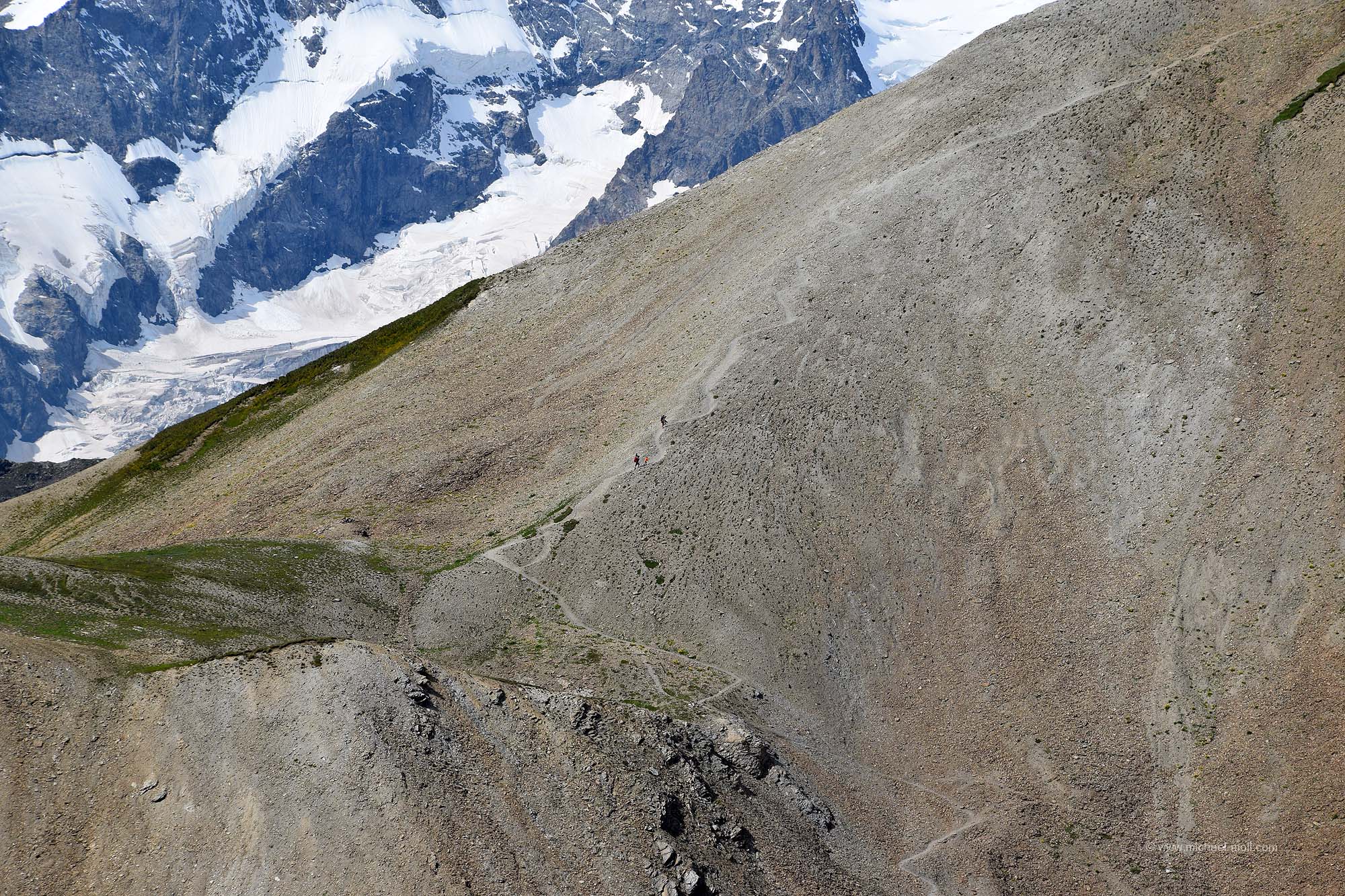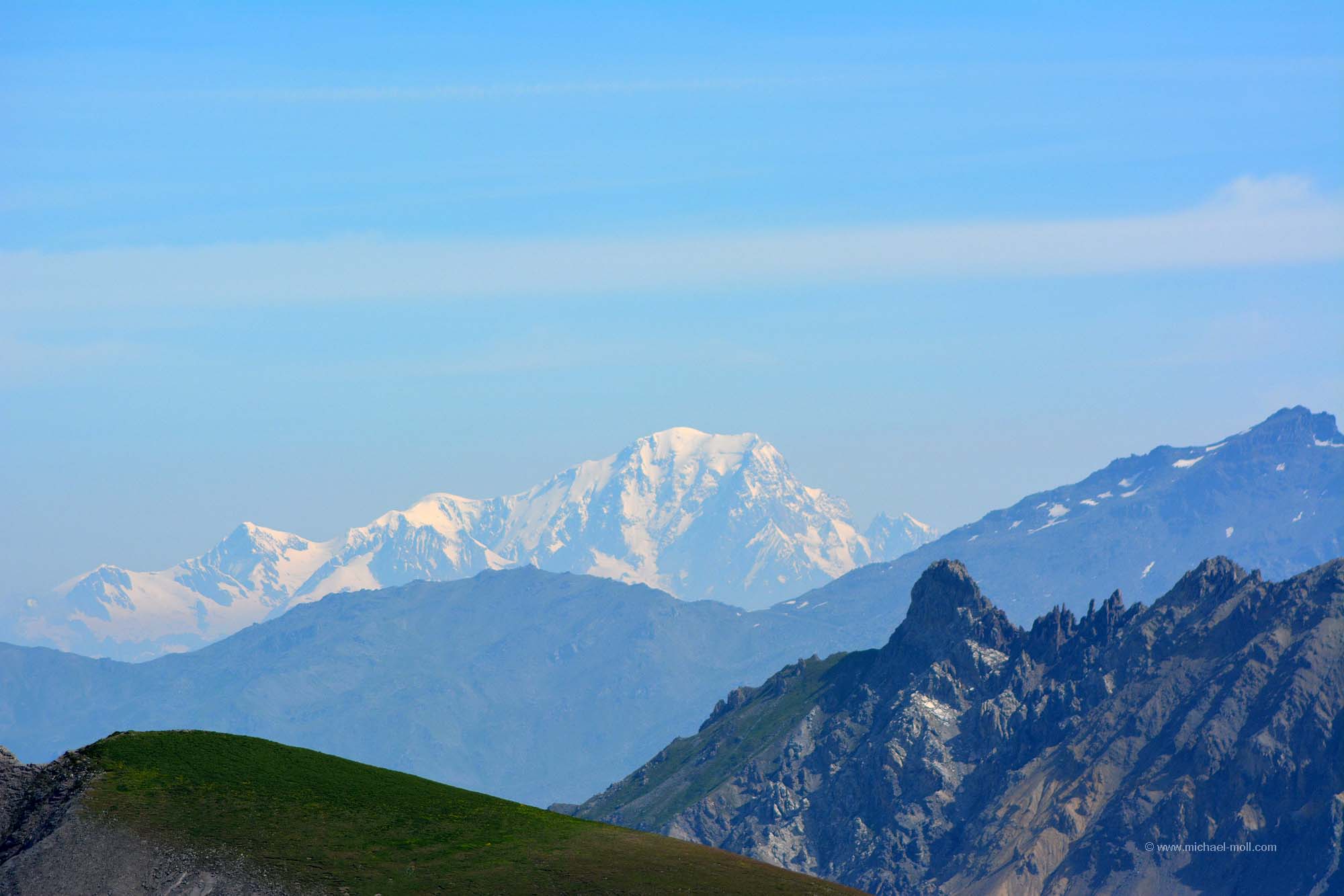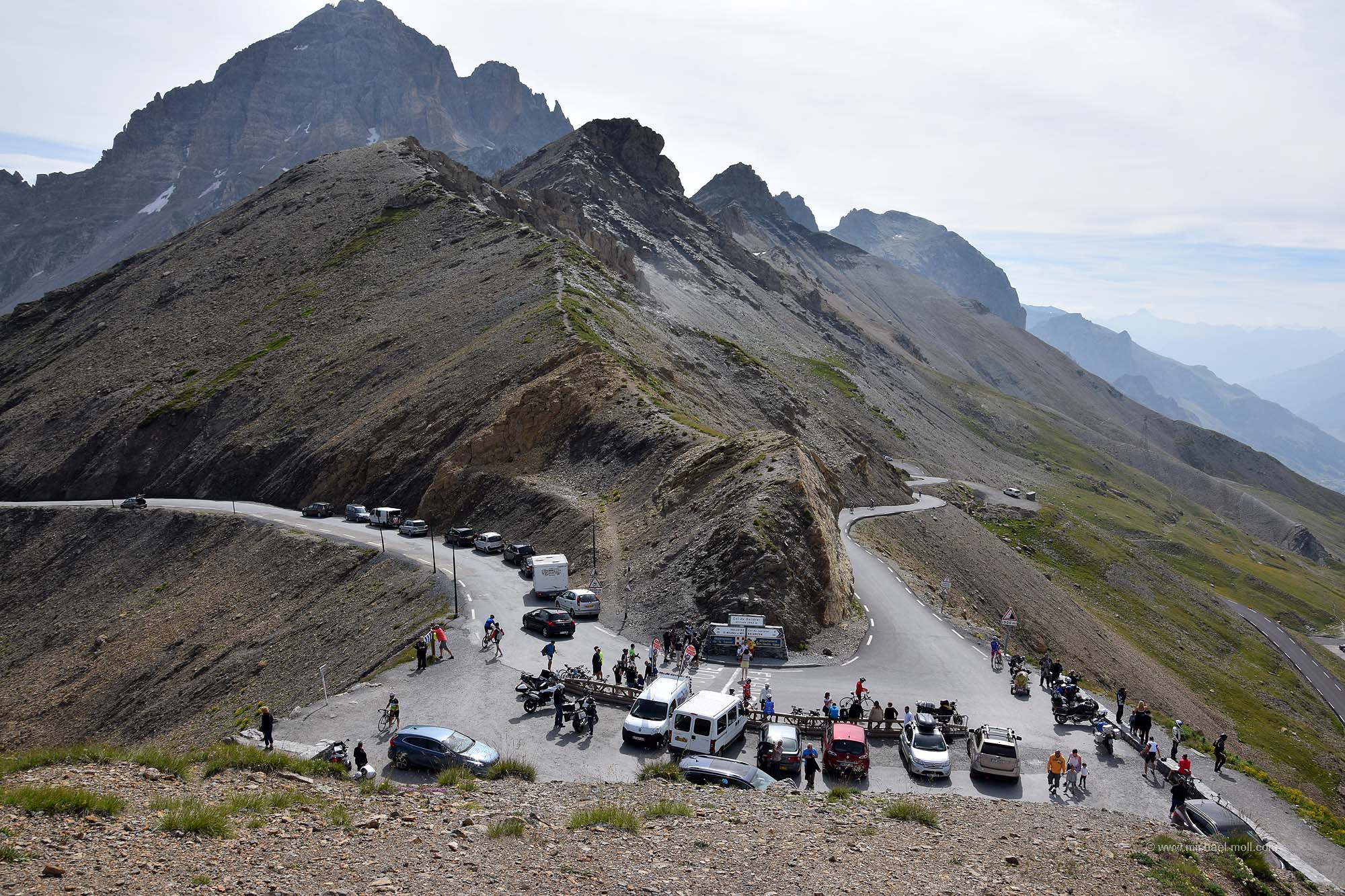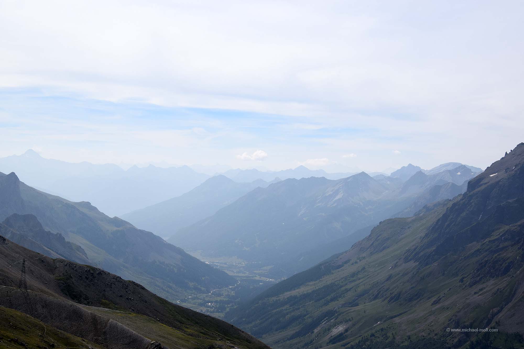 Um den Col du Galibier zu erreichen, muss man entweder erst den Col du Lautaret oder den Col du Télégraphe erklimmen. Diese beiden kann man durchaus als Zwischenetappe bezeichnen. Aber man darf auch nicht vergessen, dass man sich in einer Höhe von über 2.600 Metern befindet, die erstmal erreicht werden will. Belohnt wird die Fahrt mit einer fantastischen Aussicht, die bei guter Wetterlage rund 100 Kilometer weit reicht. Der Mont Blanc war in einer Entfernung von 92 Kilometern Luftlinie deutlich sichtbar. Weniger praktisch ist der sehr kleine und bei schönem Wetter völlig überfüllte Parkplatz. Ich habe einige Wohnmobile gesehen, die hinauf gefahren kamen und sofort auf der anderen Seite wieder hinab fuhren. Das fand ich allerdings wiederum seltsam. Man hätte ja dann am Tunnel halten können, um den Rest wieder hinauf zu gehen. Diese Leute haben definitiv etwas verpasst.