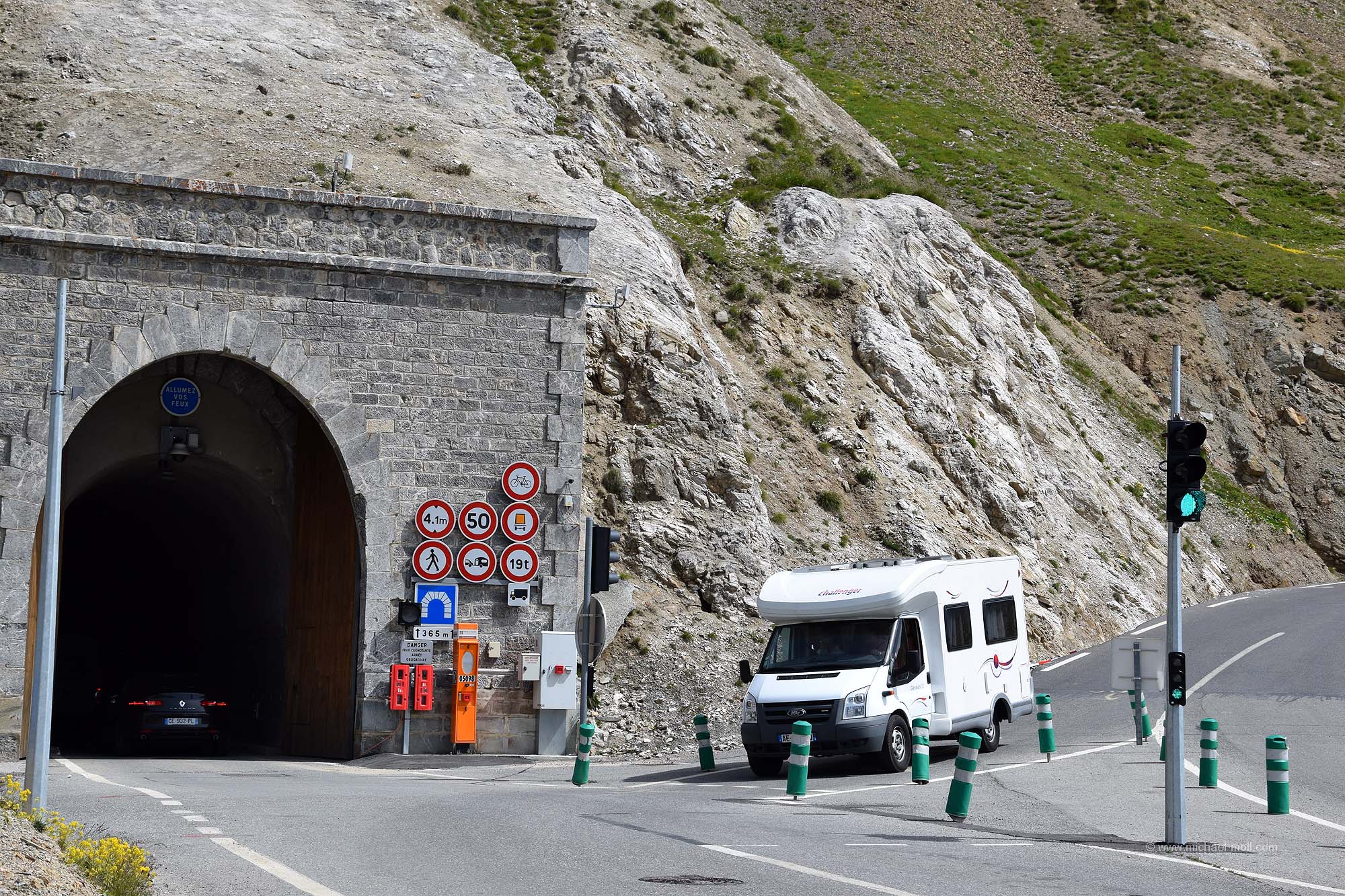 Der Col du Galibier gilt als der fünfthöchste Pass der Alpen und trennt die beiden französischen Regionen Provence-Alpes-Côte d’Azur und Rhône-Alpes. Nur wenige Meter oberhalb der kleinen Passstraße befindet sich ein Aussichtspunkt, der einen Rundumblick bis zum 90 Kilometer entfernten Mont Blanc-Massiv ermöglicht. Direkt unter diesem Aussichtspunkt befindet sich wiederum ein schmaler Tunnel. Fahrzeuge mit einem Gewicht von mehr als 3,5 Tonnen müssen den Tunnel nutzen und dürfen nicht die letzten hundert Höhenmeter bis zum eigentlichen Pass. Fahrzeuge mit mehr als 19 Tonnen dürfen hier gar nicht fahren. Da der Tunnel schmal ist und nur in eine Richtung befahren werden kann, wird der Verkehr mit einer Ampel geregelt. Sie gilt als die höchstgelegene Ampel Europas.