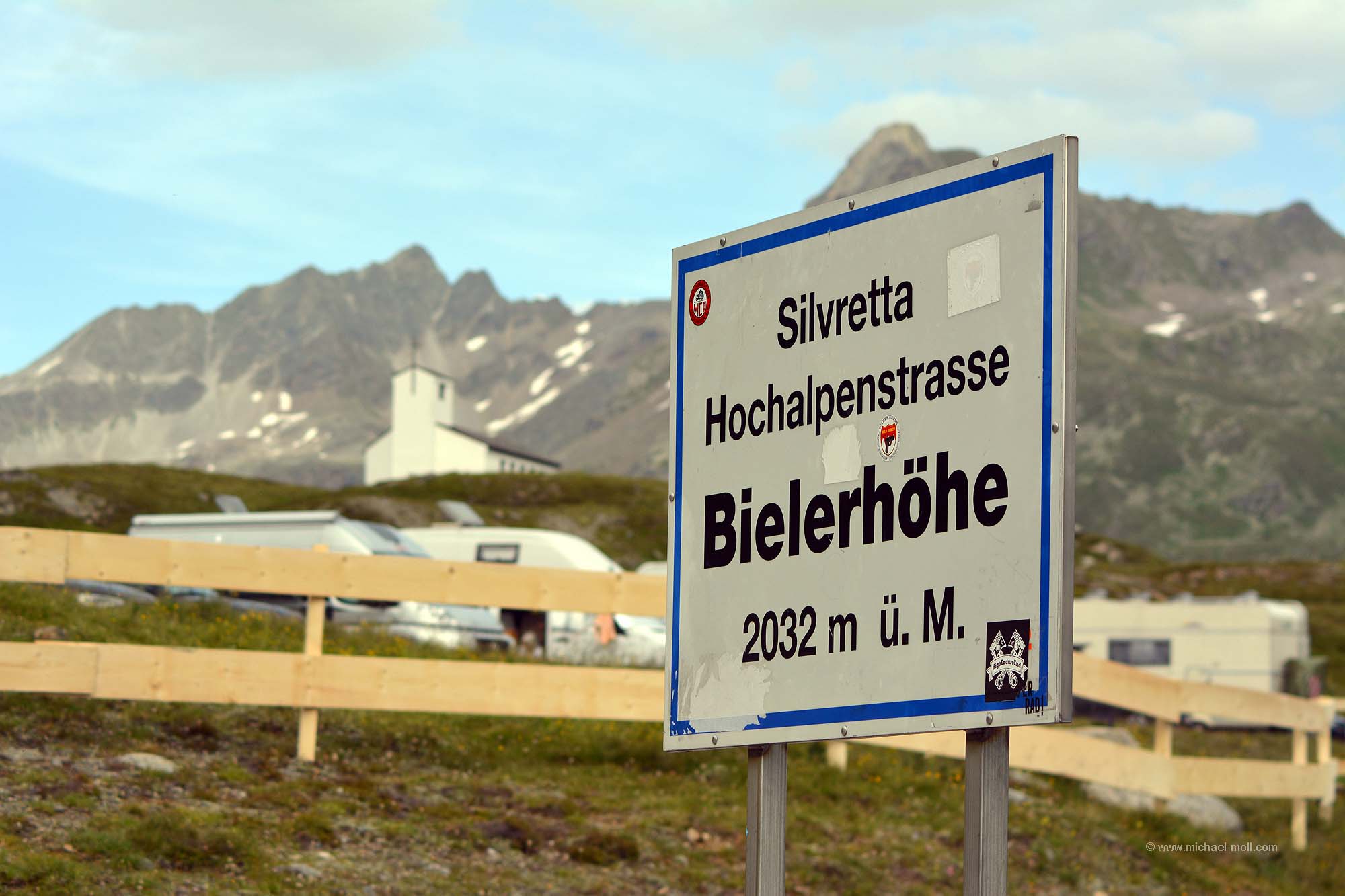 Laut Schild heißt der Passübergang Bielerhöhe und liegt 2.032 Meter über dem Meer.