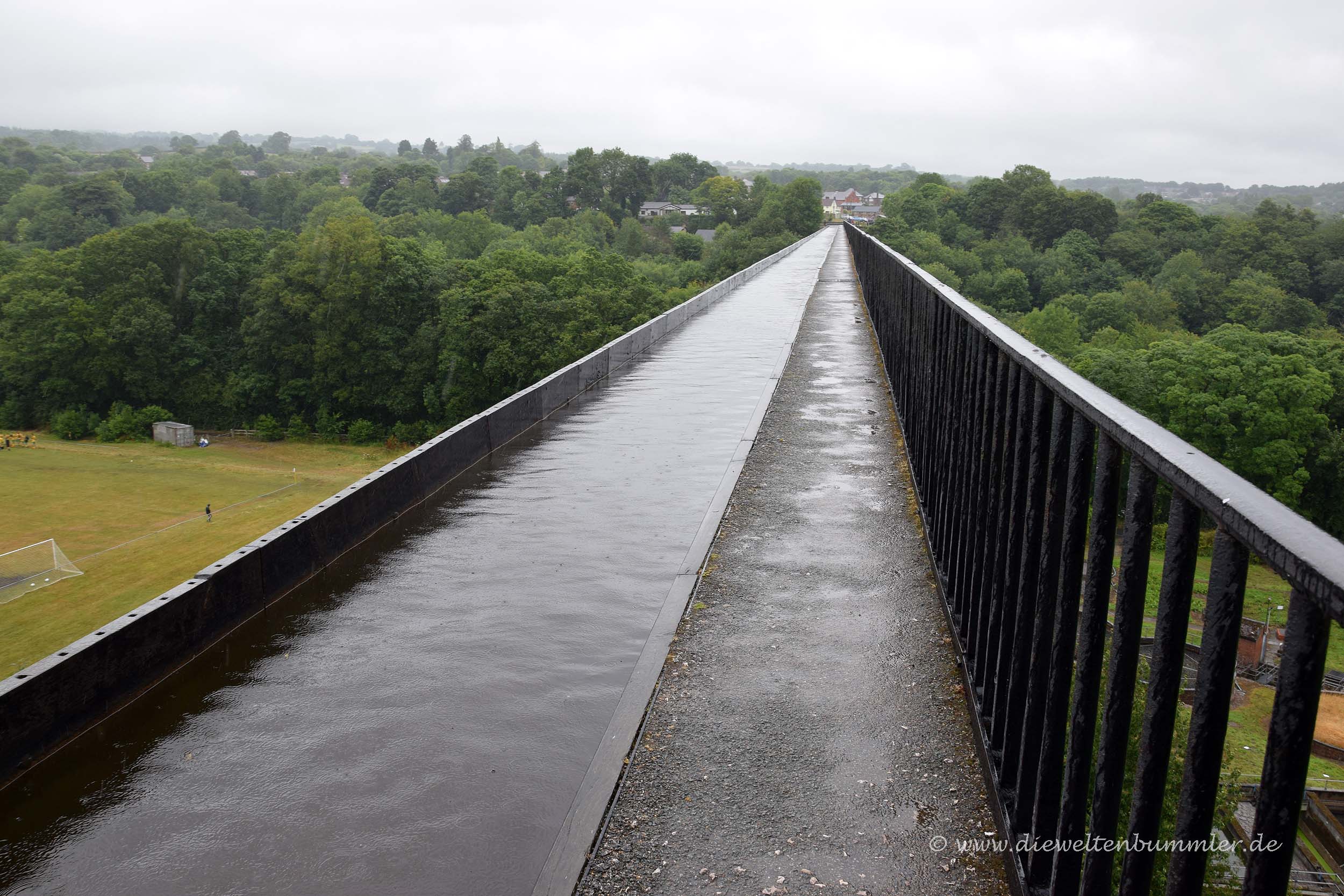 Auf der Brücke befindet sich eine breite Rinne mit Wasser, die zum Llangollen-Kanal gehört. Dieser ist einer von mehreren Kanälen, auf denen man gemütlich mit einem sogenannten Narrowboot fahren kann und bringt es auf eine Länge von über 70 Kilometern.