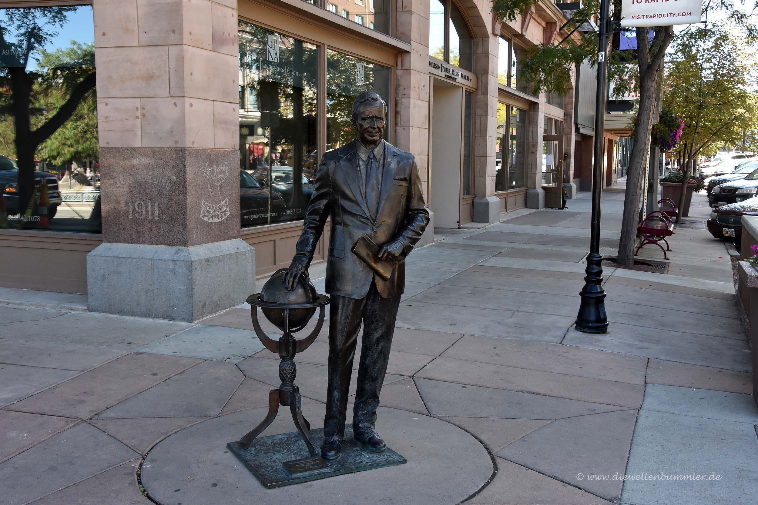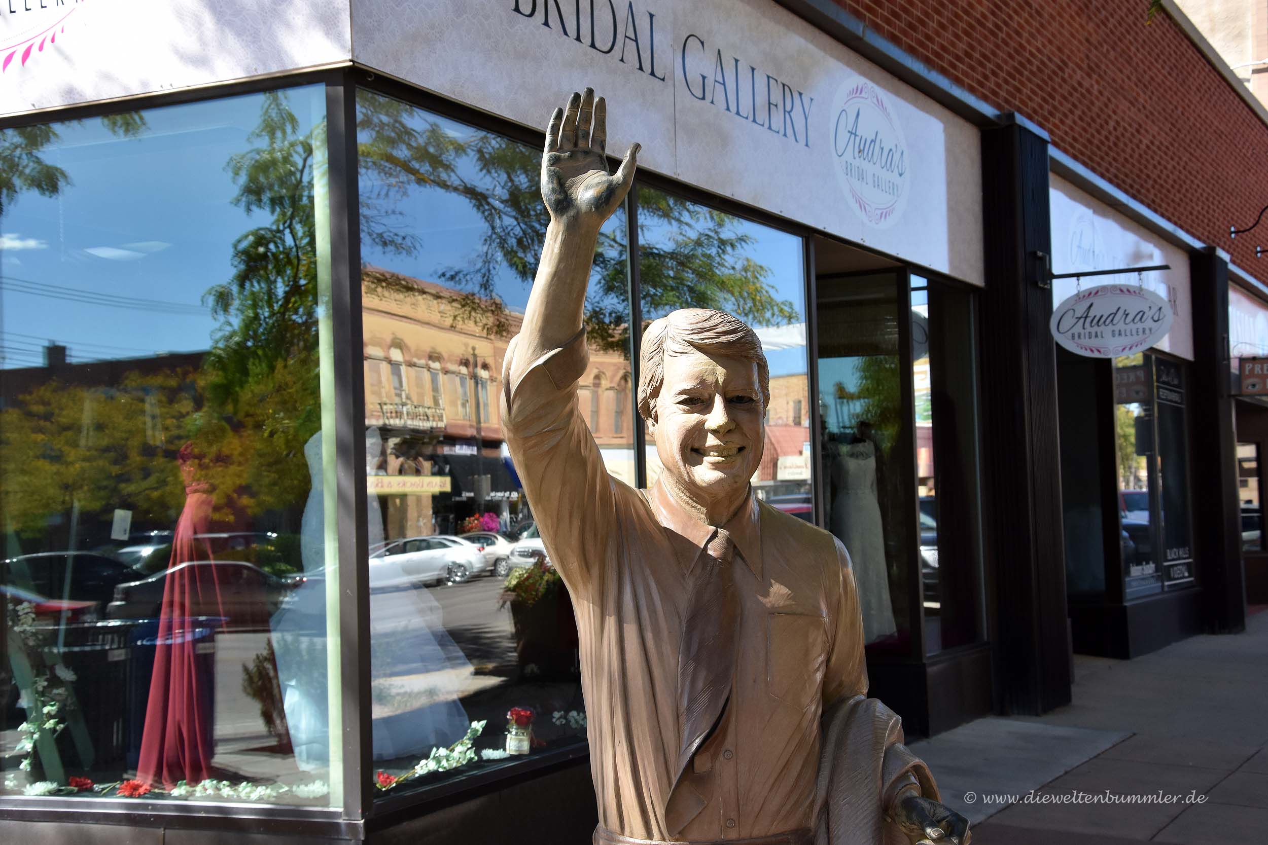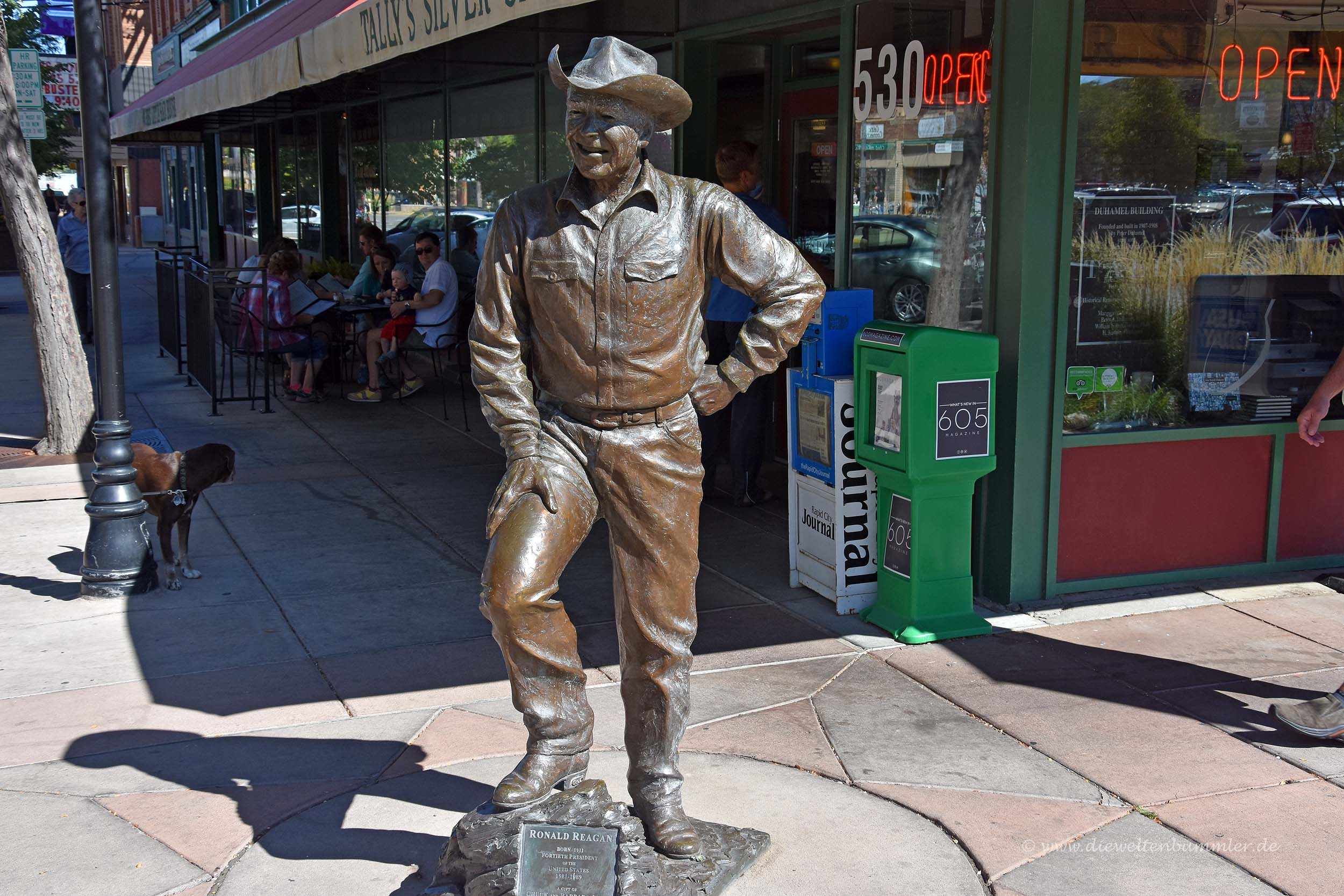 Der 40. Präsident der Vereinigten Staaten wird in Rapid City als waschechter Cowboy dargestellt. Man kennt ihn auch als Schauspieler: Ronald Reagan.
