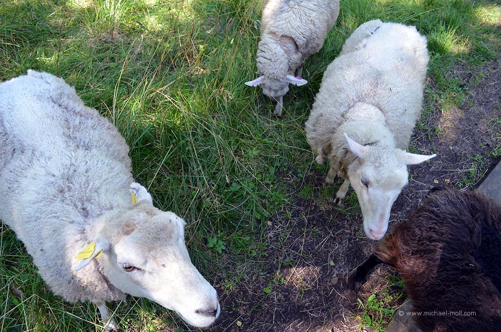 Wir wandern wieder an unseren neuen vierbeinigen Wollfreunden zurück, besichtigen die Überreste eines ehemaligen Wehr- und Wachturmes und erreichen nach gut zwei Stunden wieder das Bomarsund-Museum. Der Eintritt ist frei und eigentlich besteht das Museum auch nur aus einem einzigen Räumchen. Aber eine nette Dame heißt uns Willkommen und fragt, ob wir einen zehnminütigen Film über die russische Festung sehen wollen. Wir sind die einzigen Besucher weit und breit und die Dame freut sich sehr, dass wir Interesse an dem Museum zeigen. Wie können wir also ihre Frage verneinen? Nach dem Film hinterlassen wir eine kleine Spende, tragen uns ins Gästebuch ein und kaufen noch einen Ansteckpin.