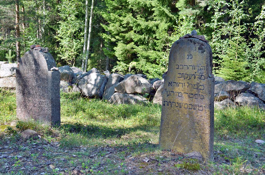 Da es der höchste Punkt der Insel ist, geht es nun langsam wieder bergab. Wir machen noch einen kleinen Abstecher zu einem weiteren Grabgelände. Dazu überqueren wir eine Schafweide, wo uns die Tiere blökend entgegenspringen und erreichen zwei Grabfelder, die ebenfalls mit einem kniehohen Mäuerchen umgeben sind. Auf einem der Felder erheben sich jüdische Grabsteine. Obligatorisch die kleinen Kiesel auf den Grabsteinen und natürlich die hebräischen Inschriften. Bei dem anderen Feld soll es sich um einen muslimischen Friedhof handeln. Diese Info haben wir vorab vom Touristenbüro in Mariehamn erhalten. Im Gegensatz zu den jüdischen Gräbern ist davon jedoch nichts zu erkennen.