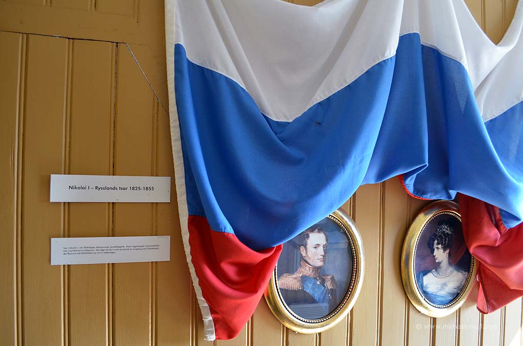 Prästö liegt nordöstlich der Hauptstadt Mariehamn und wer auf der Karte der Straße Nummer 2 folgt, wird automatisch dorthin gelangen. Der Ausgangspunkt dieser Wanderung liegt direkt am Bomarsund, wo sich die Überreste einer ehemaligen russischen Festung befinden. Die Festung war eines der größten Bauwerke auf der Inselgruppe und beherbergte bis zu 5.000 russisches Soldaten. Und zwar bis zum Jahr 1854, als britisch-französische Truppen die Festung angriffen und sie bis auf die Grundmauern zerstörte. Wir gehen über die Brücke und sehen auf der linken Seite das kleine Bomarsund-Museum, in dem liebevoll über die damalige Geschichte erzählt wird. Aber erst wollen wir wandern und folgen daher den roten Holzpfählen, die mit einem weißen Pfeil auf blauem Grund markiert sind. Schon nach wenigen Metern erreichen wir Doniken. Hierbei handelt es sich um eines der wenigen erhalten gebliebenen Häusern aus der Zeit der Russen auf Åland. Es beherbergte den russischen Telegrafisten. Einige Zeit später treffen wir auf weitere Erinnerungen an die Russen.