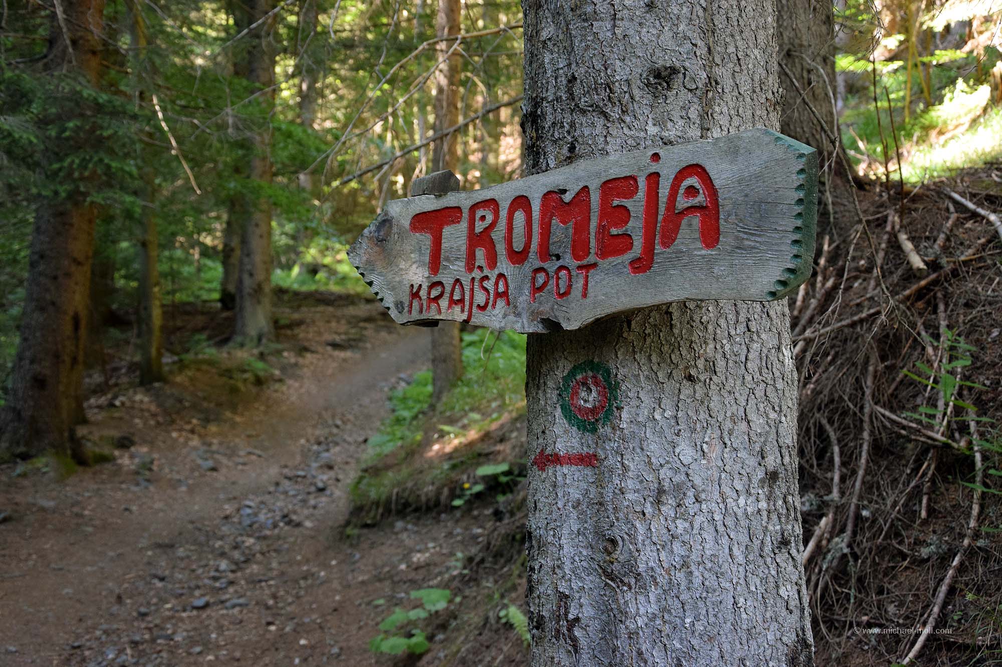 Zu erreichen ist er von österreichischer Seite aus mit mehrern Sesselliften. Aber wer Flugangst hat und generell nicht fliegt, der fährt in der Regel auch nicht mit Sesselliften. Da bleibt also nur der Aufstieg zu Fuß. Und dieser ist von Österreich aus anscheinend nicht ganz so schön. Auch einen geeigneten Punkt in Italien habe ich nicht wirklich gefunden. Aber in Slowenien lohnt der Halt in der Ortschaft Rateče. Am besten parkt man seinen Wagen direkt am kleinen Busbahnhof (46.496202, 13.719257). Über die Hauptstraße gelangt man dann zum Ausgangspunkt im Ortskern. Dieser liegt auf einer Höhe von rund 870 Metern über dem Meer. Von dort aus sollte man etwas über 2 Stunden für die Wanderung einplanen.