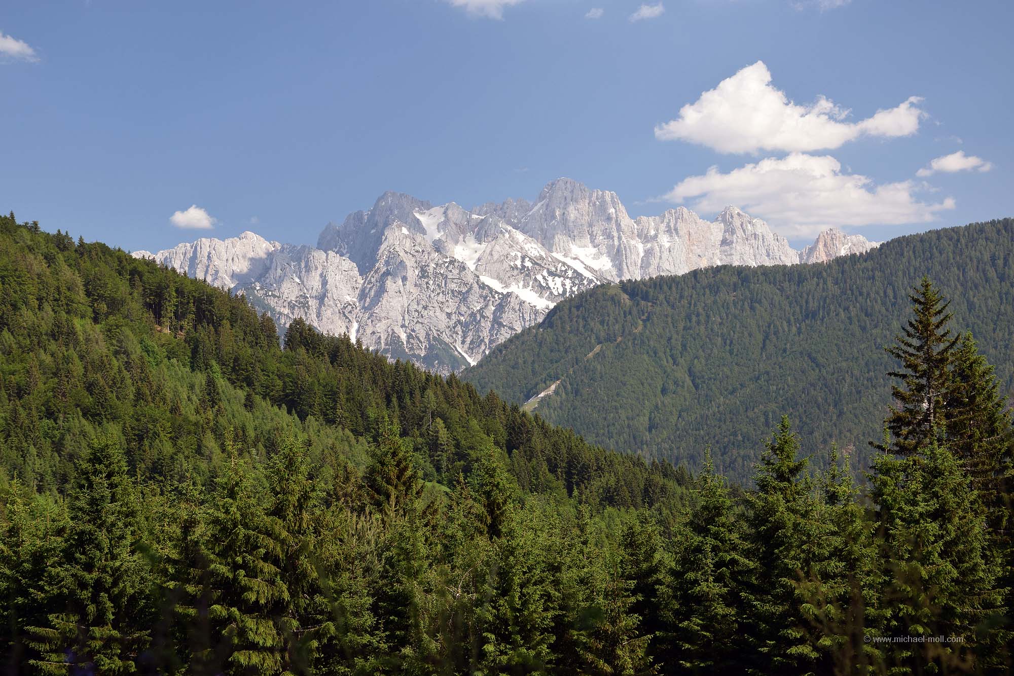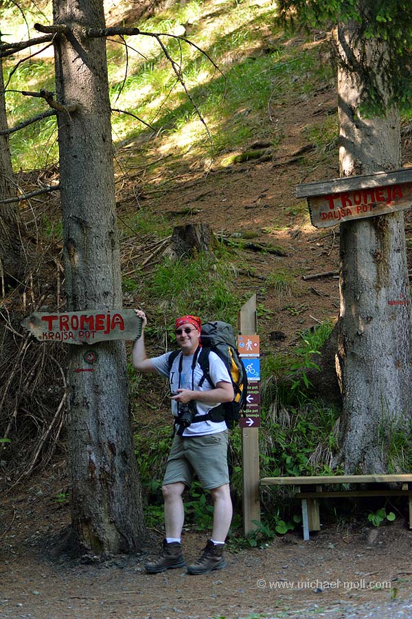 Wir entschieden uns dafür, auf dem Zickzack-Weg schnell an Höhe zu gewinnen und später auf dem Rückweg den Umweg zu wandern, um dann auch mal etwas neues zu sehen. Noch während des Aufstiegs, aber natürlich auch am Dreiländereck selbst, kann man immer wieder einen wunderbaren Blick über das südlich gelegene Tal in Slowenien werfen und die möchtigen Berge des Triglav-Nationalparks sehen.
