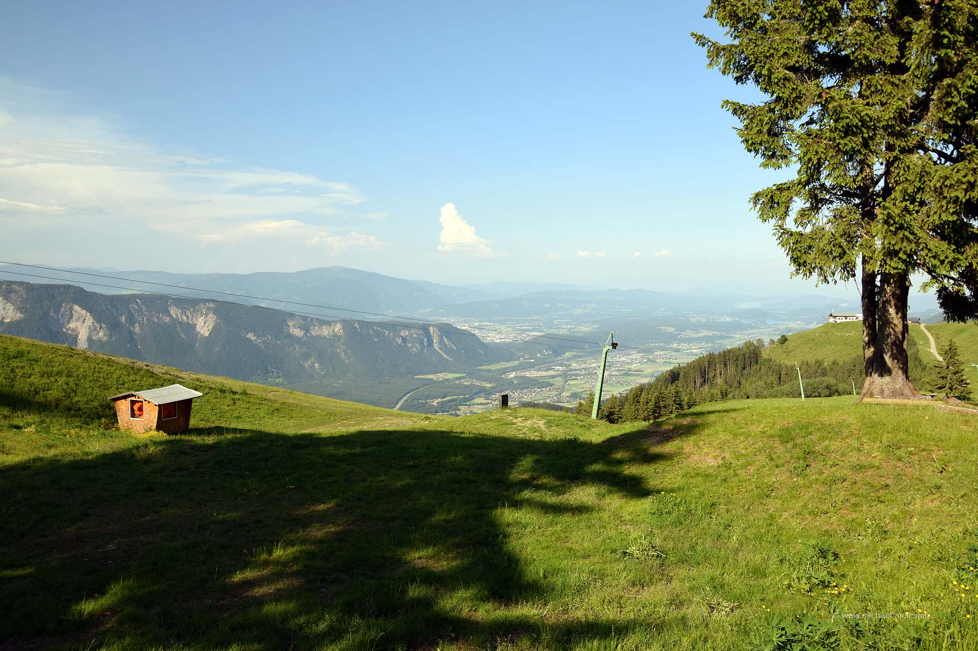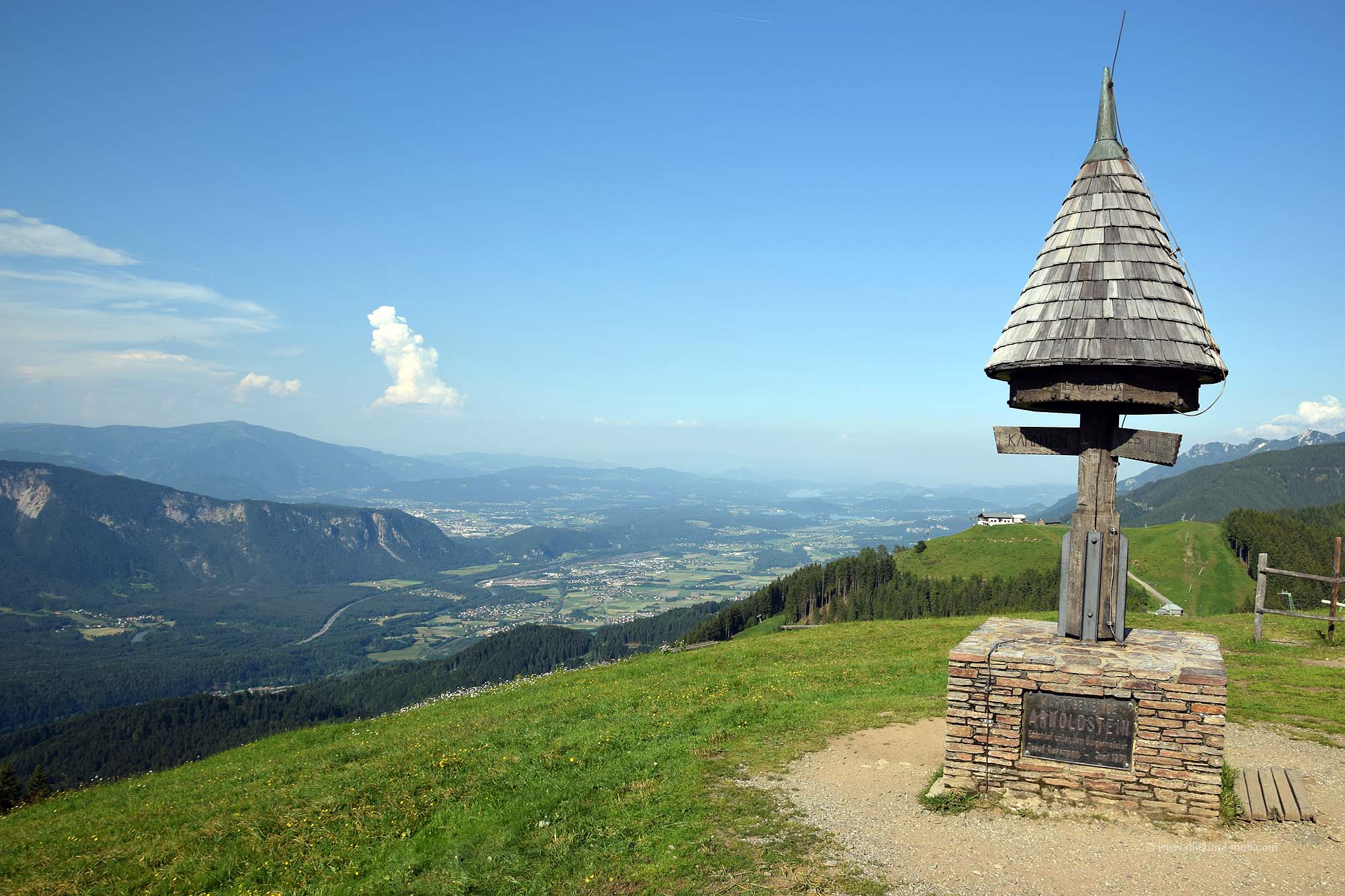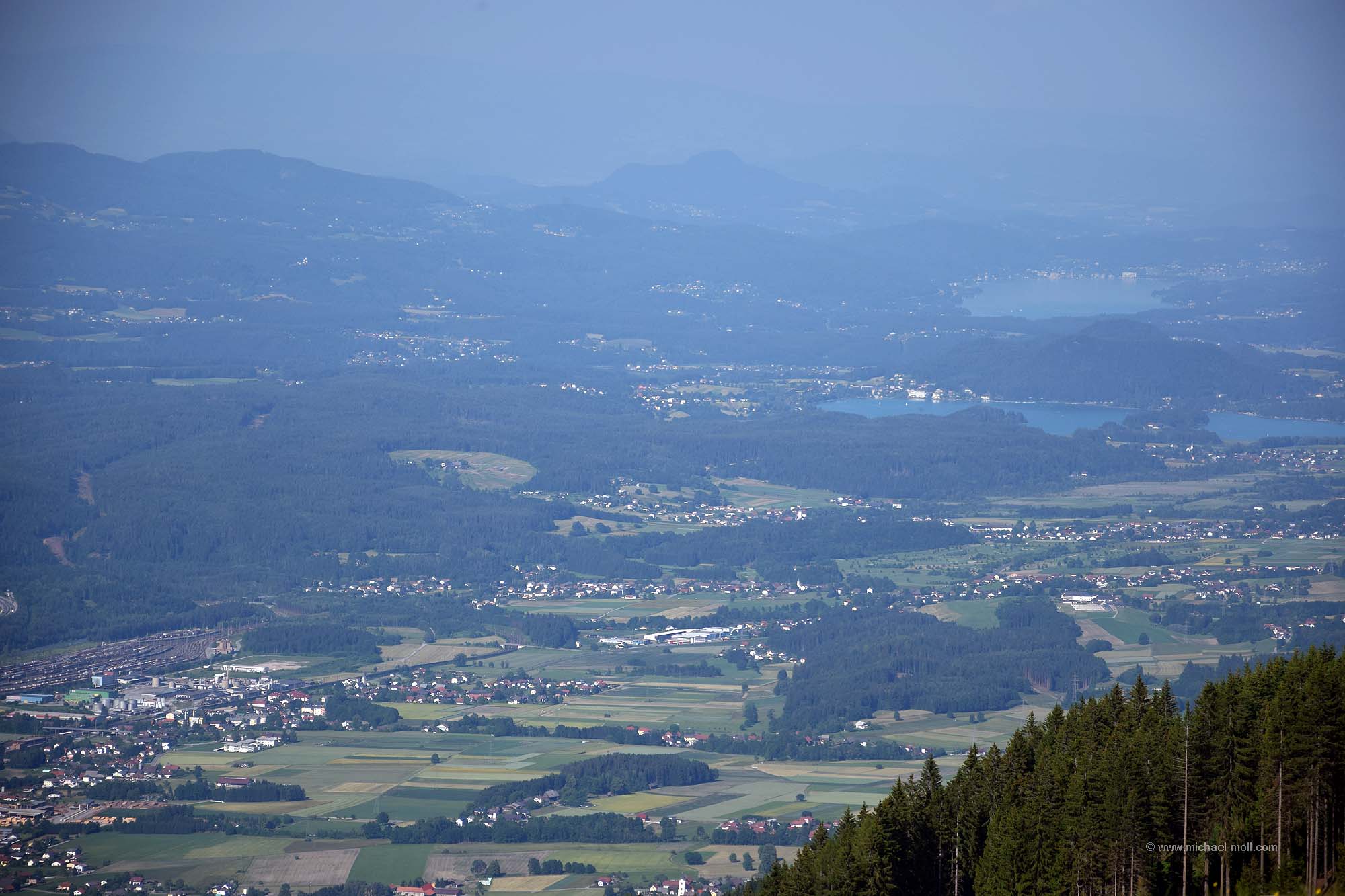 Oben angekommen wird dieser Ausblick noch mit einer Fernsicht nach Österreich ergänzt. Mit etwas Mühe kann man den Aussichtsturm auf dem Pyramidenkogel und natürlich auch den Wörthersee erkennen. Lediglich nach Italien gibt es keine Aussicht, weil dort die Sicht durch einen Wald versperrt ist. Alles in allem aber eine schöne Tour mit tollen Ausblicken, die an einem Nachmittag bequem zu machen ist.