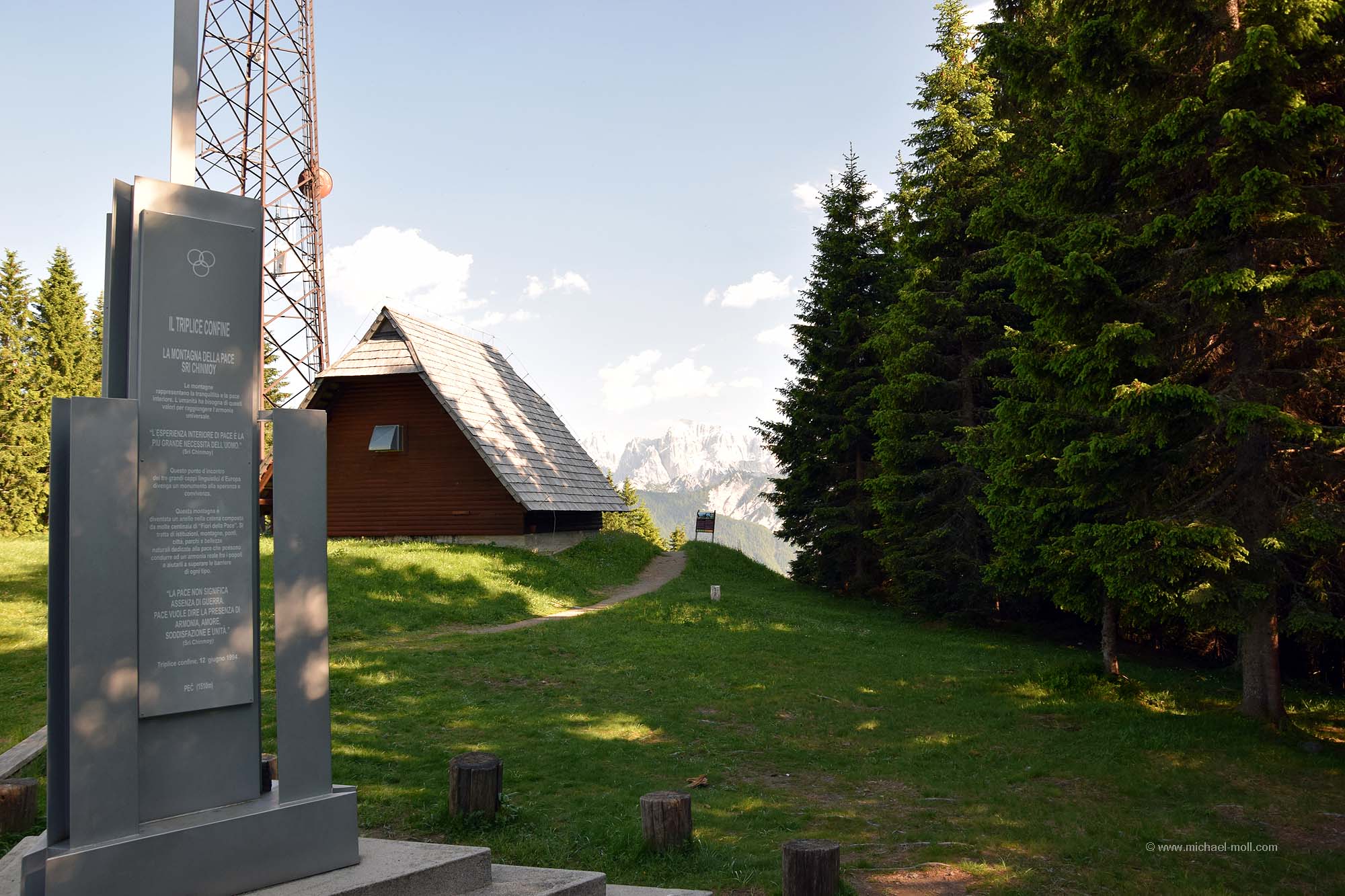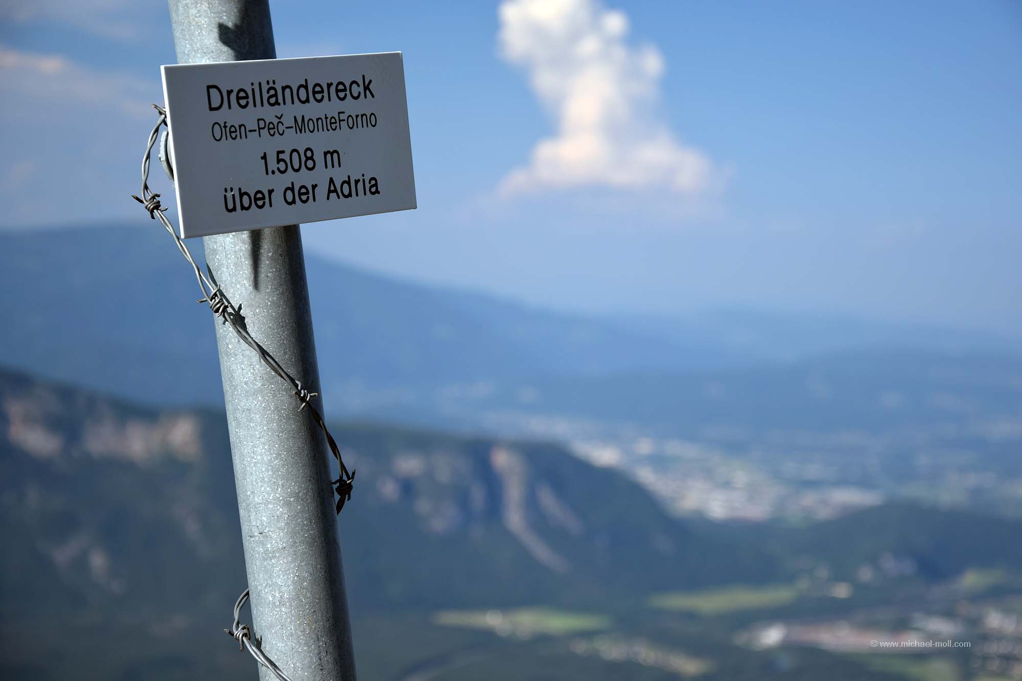 Denn der Schnittpunkt der drei Staaten befindet sich auf einem Berg. Und dieser trägt tatsächlich den Namen „Dreiländereck“. Auf Slowenisch heißt er Peč und auf Italienisch wird er Monte Forno gerufen. Im Zweifel kann der 1.509 Meter hohe Gipfel aber auch Ofen genannt werden.