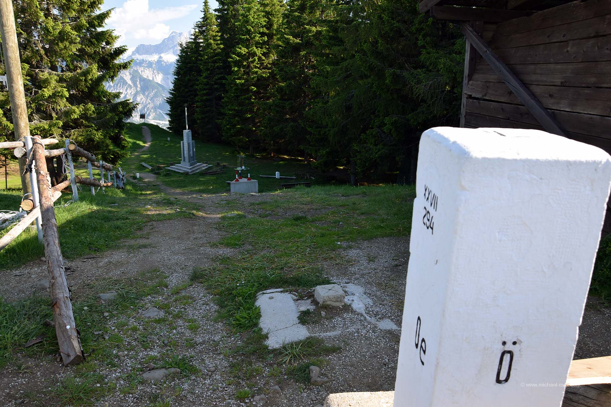 Während der Fahrt mit dem Wohnmobil durch die Alpen habe ich natürlich auch zwischendurch einige Wanderungen gemacht. Eine davon führte mich zum Dreiländereck von Slowenien, Österreich und Italien. Da ich Dreiländerecke sammle und für manche auch schon mal einige Anstrengungen auf mich nehme, wie zum Beispiel beim Dreiländereck Russland-Finnland-Norwegen oder beim Dreiländereck Finnland-Schweden-Norwegen, wollte ich mir das natürlich nicht entgehen lassen. Anders als bei den beiden erwähnten Dreiländerecken in Skandinavien ist die Wanderung am Dreiländereck Slowenien-Italien-Österreich aber nicht weit und flach, sondern eher kurz und steil.
