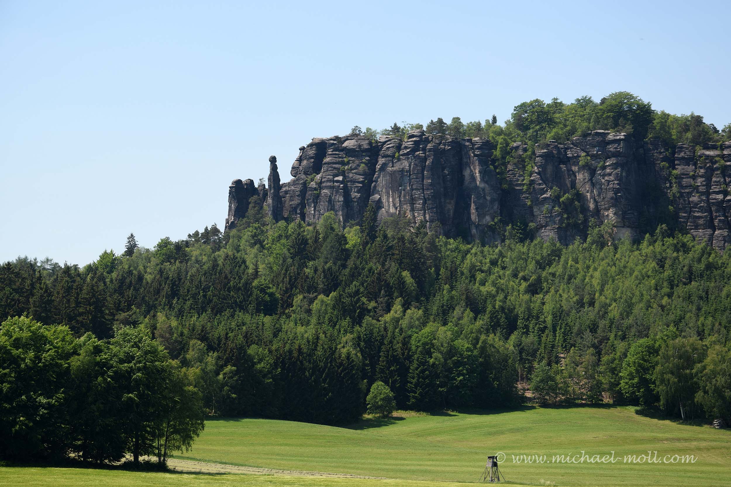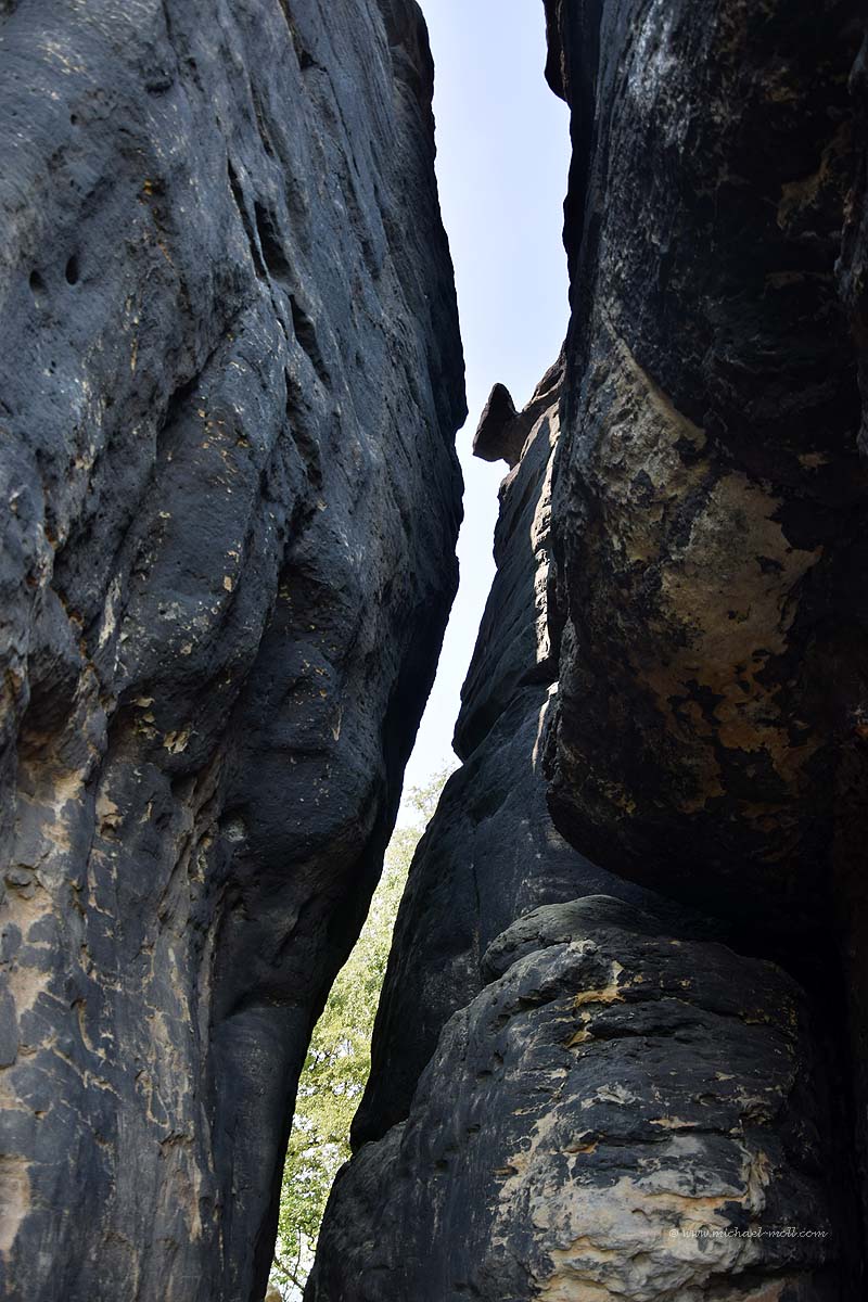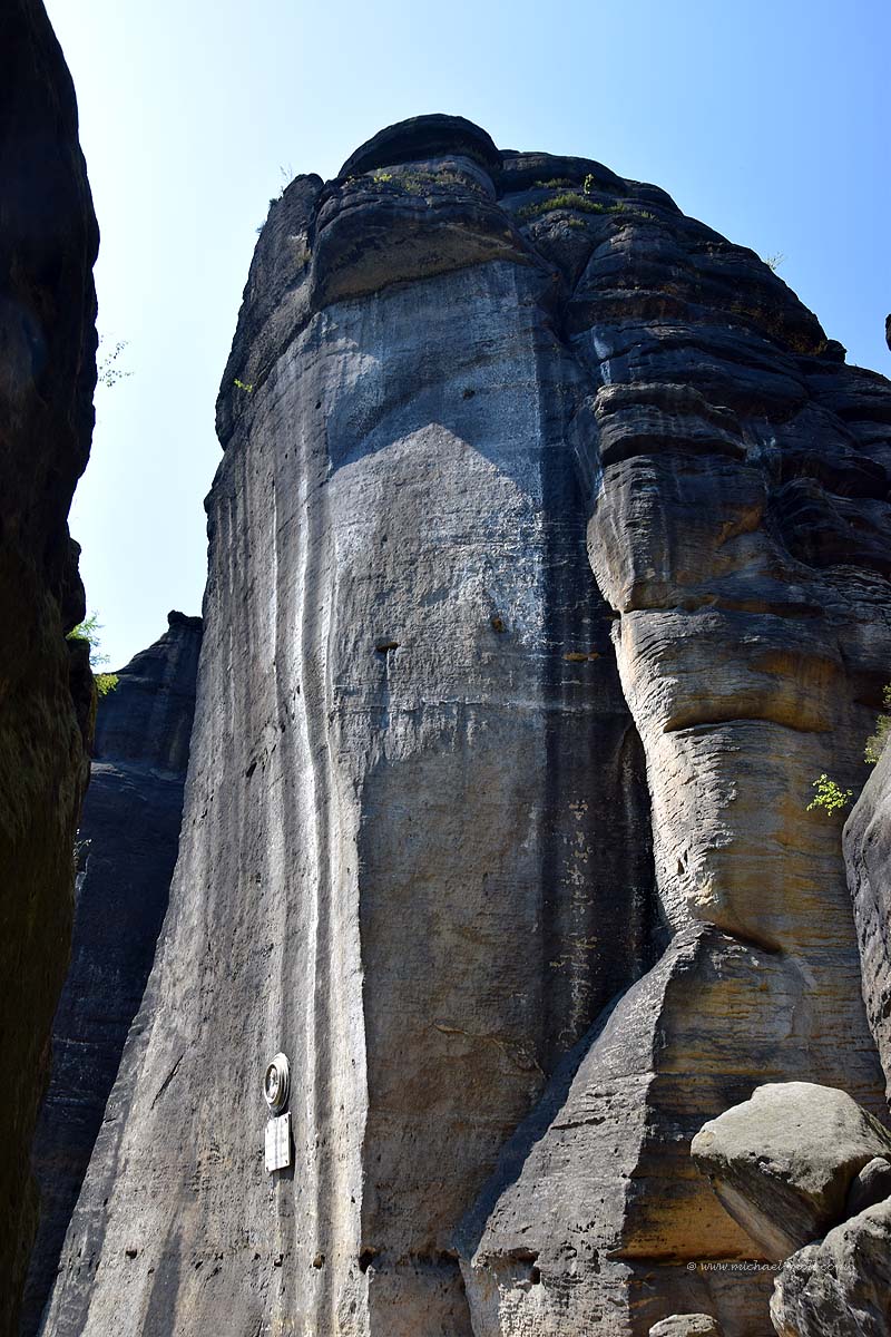 Im Süden befindet sich zwar kein Aufstieg mehr, dafür aber die sogenannte Barbarine. Dabei handelt es sich um eine frei stehende Felsnadel, die über 42 Meter hoch aufragt. Das Interessante an dieser Wanderung ist dabei, dass man so ziemlich alles mitnehmen kann, was der Pfaffenstein hergibt. Wir haben das Auto auf dem Wanderparkplatz in Pfaffendorf stehen gelassen und folgten dem leicht aufwärts führenden Weg zum Pfaffenstein.