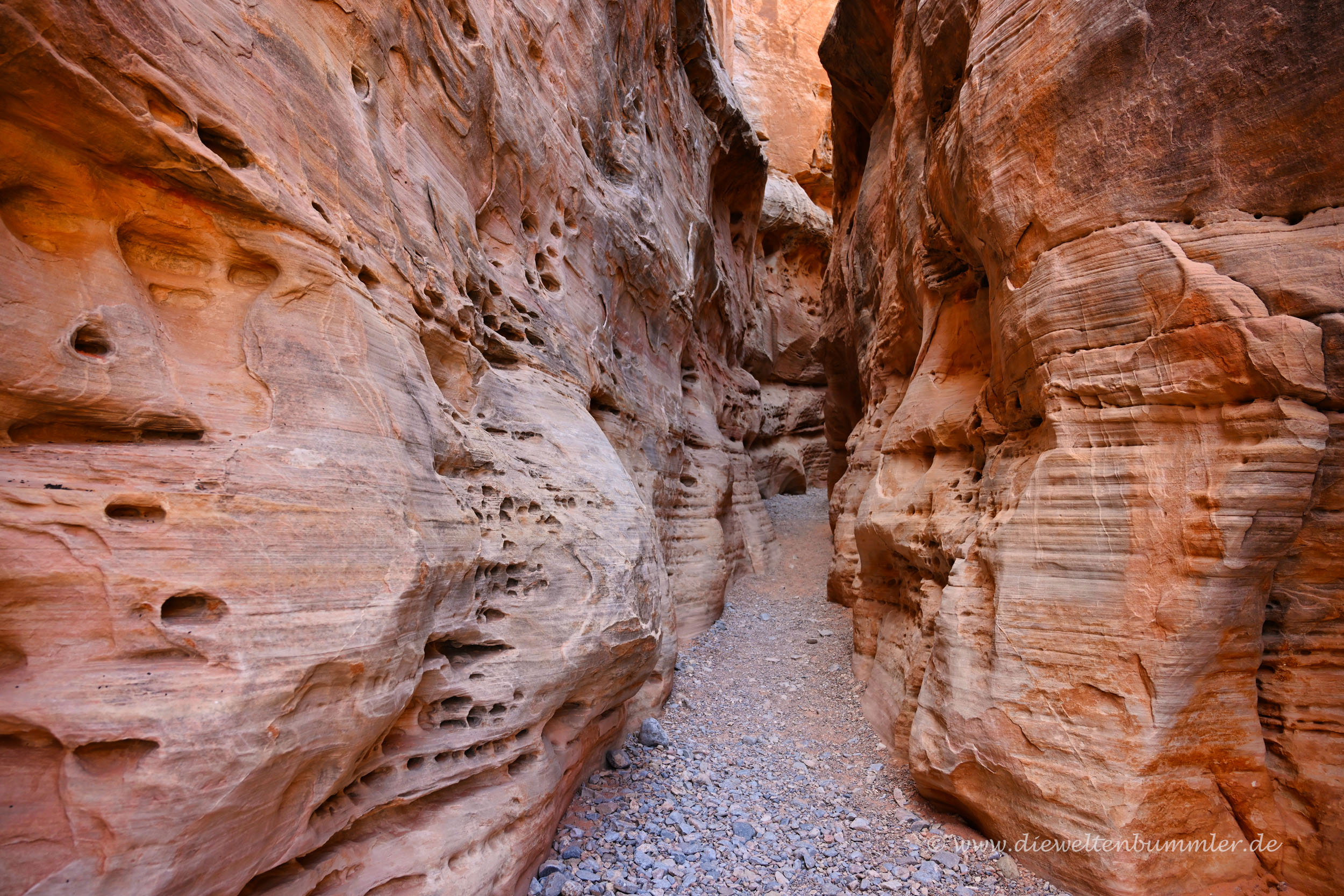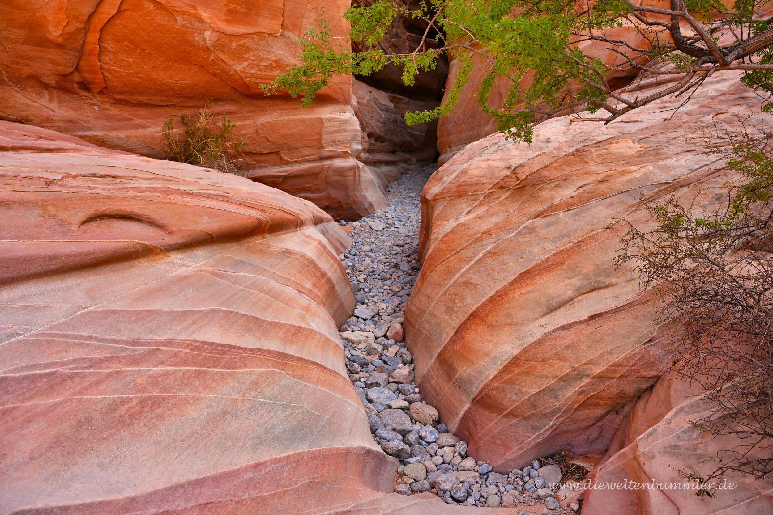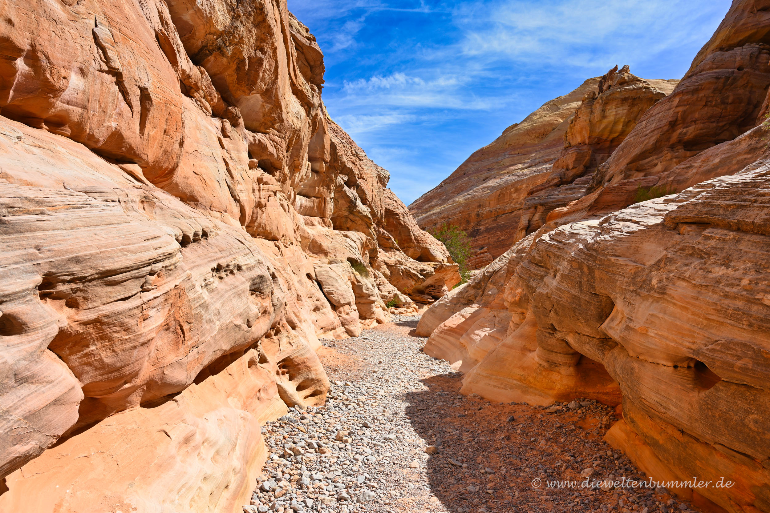 Auch auf dem White Domes Trail trifft man auf Felsen, die unterschiedlich gefärbt sind und ein wirklich schönes Bild abgeben. Der Höhepunkt des Trails ist aber sicherlich die Durchquerung einer kleinen Schlucht. Das sind nur wenige Meter, die man hier wandert, aber die Engstelle ist schon sehenswert.