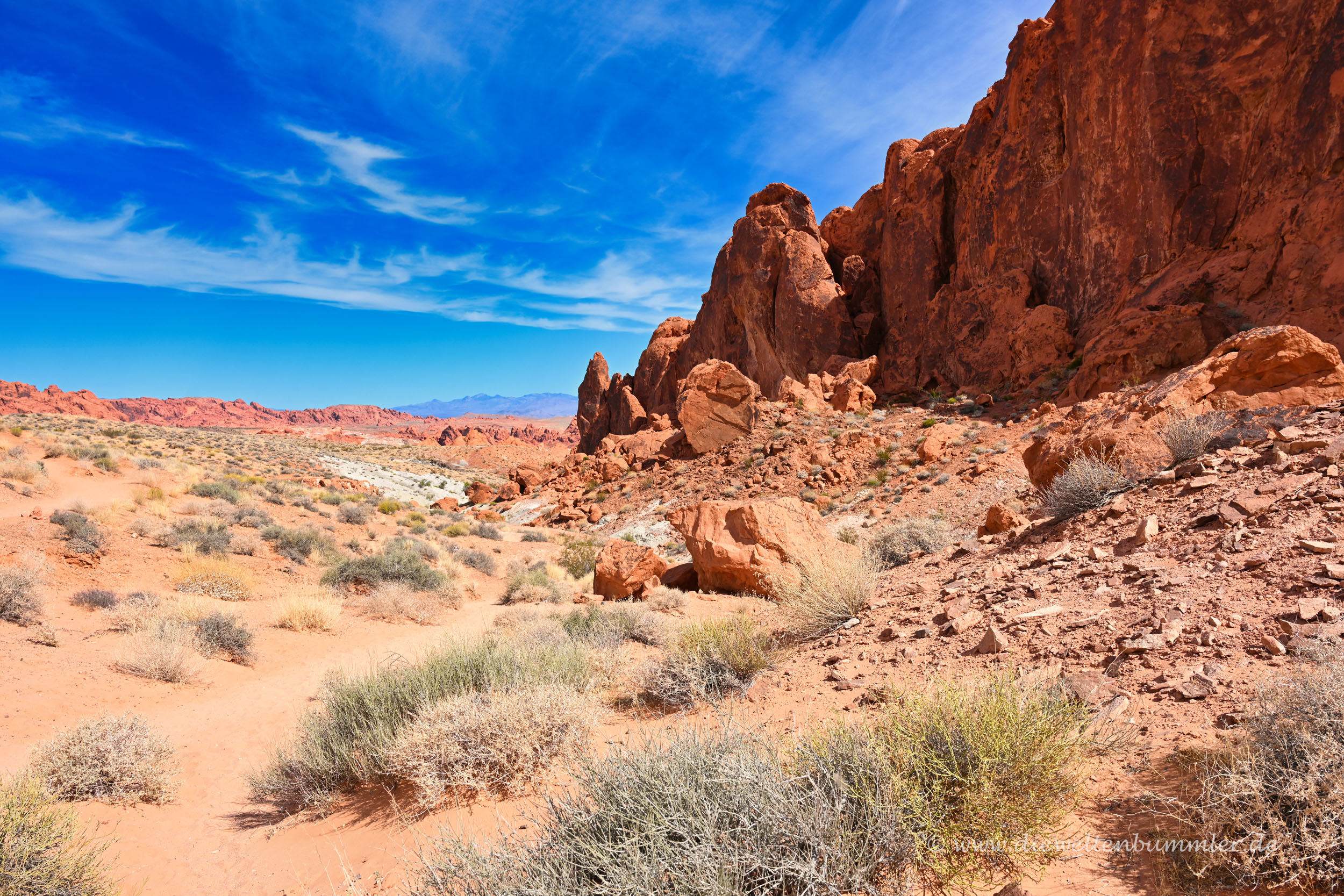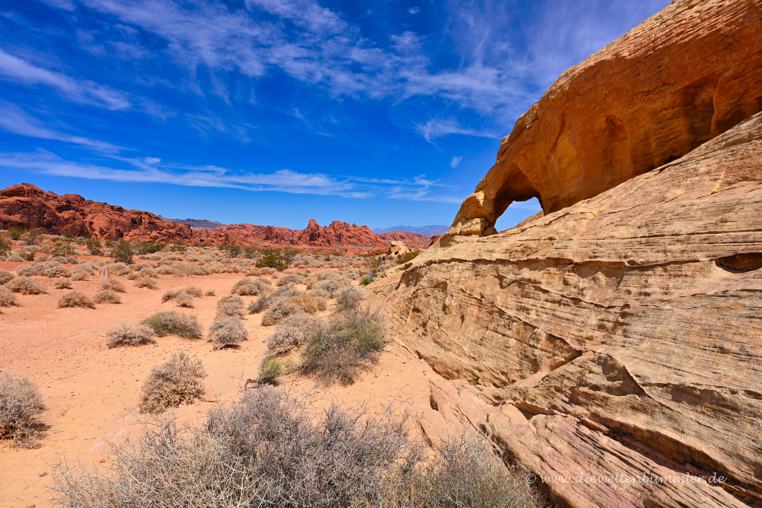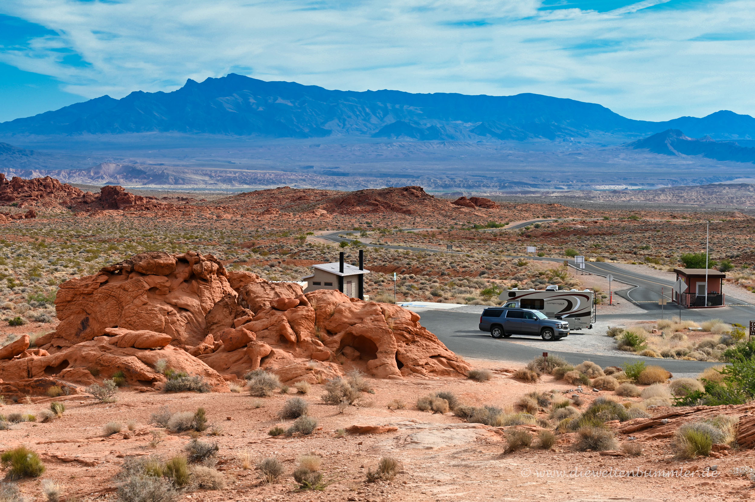 Im Süden des US-Bundesstaates Nevada befindet sich das Valley of Fire bzw. der Valley of Fire State Park. Er liegt nahe der Interstate 15 ziemlich gut erreichbar zwischen Las Vegas und dem Dreiländereck von Nevada, Arizona und Utah. Wer sich von Osten, also von Arizona nähert, der verlässt die Interstate 15 kurz hinter der Staatsgrenze, um auf den Highway 169 nach Süden abzubiegen.
