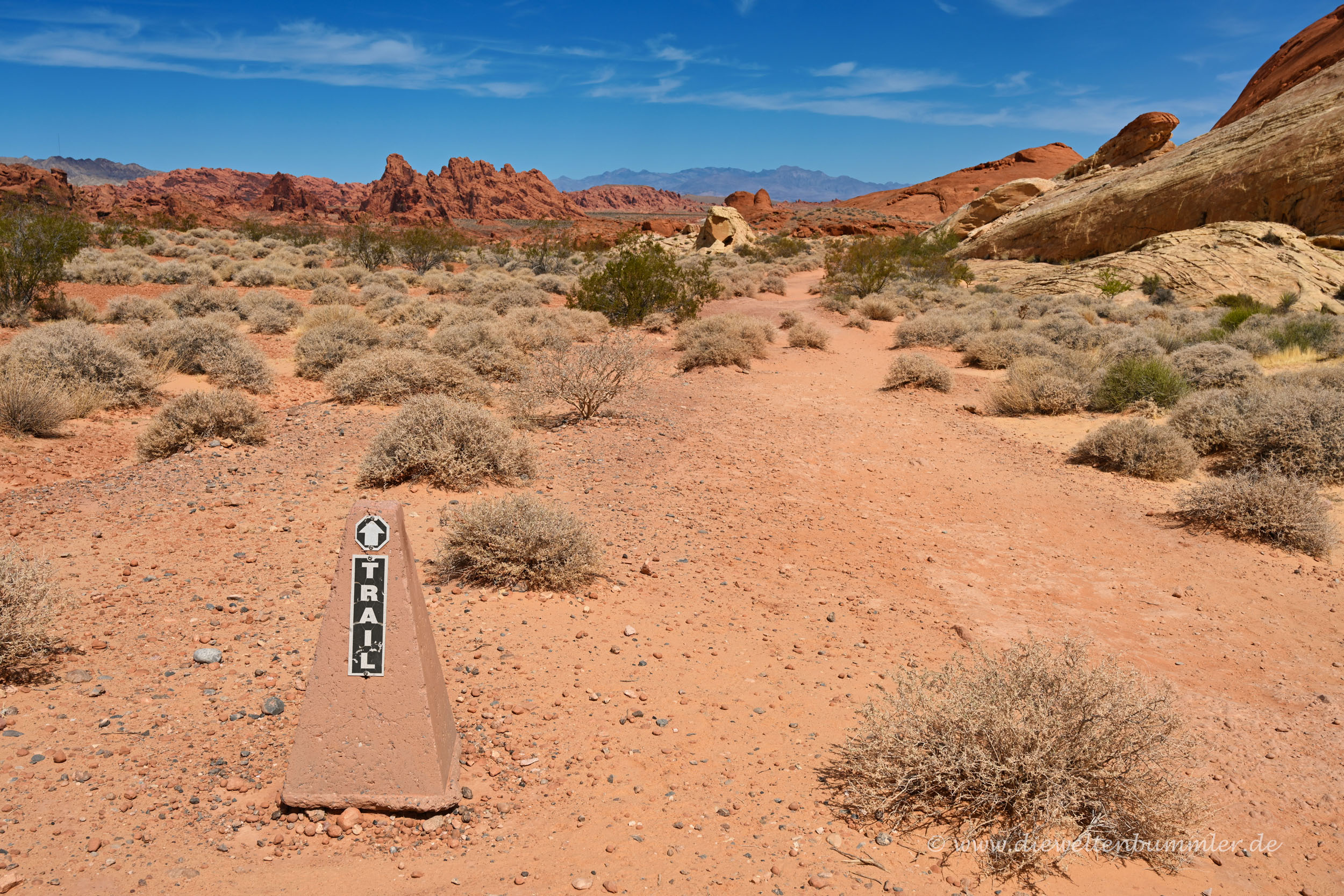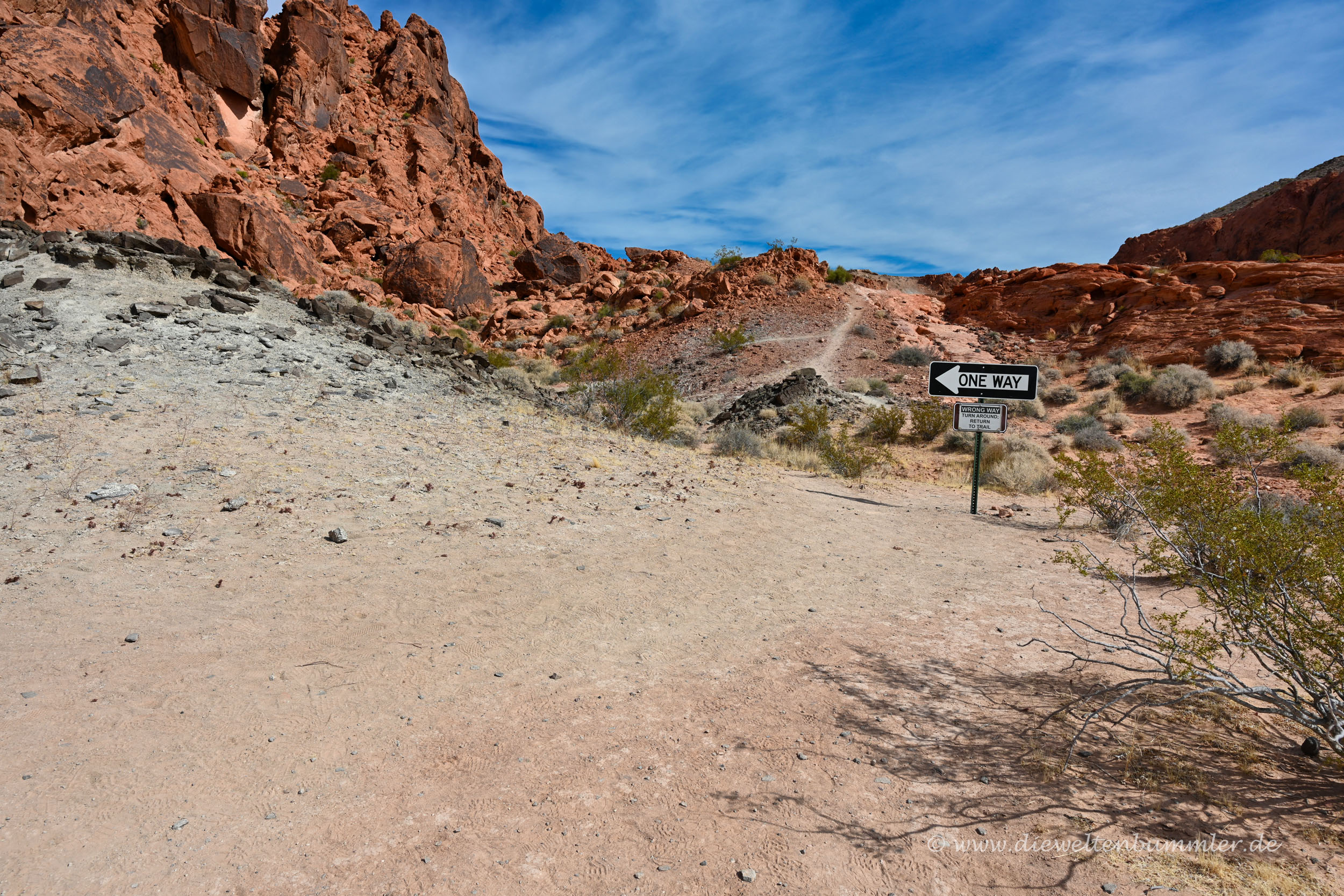 Nach der ersten Orientierung im Besucherzentrum stellt man schnell fest, dass die Verkehrswege im Valley of Fire im Wesentlichen aus einer Sackgasse bestehen. Das kennen wir bereits aus dem Arches Nationalpark. Sowohl dort als auch hier fährt man also hinein, hat man mehrere Möglichkeiten zum Anhalten und Wandern, bevor man schließlich den gleichen Weg wieder hinaus fährt.