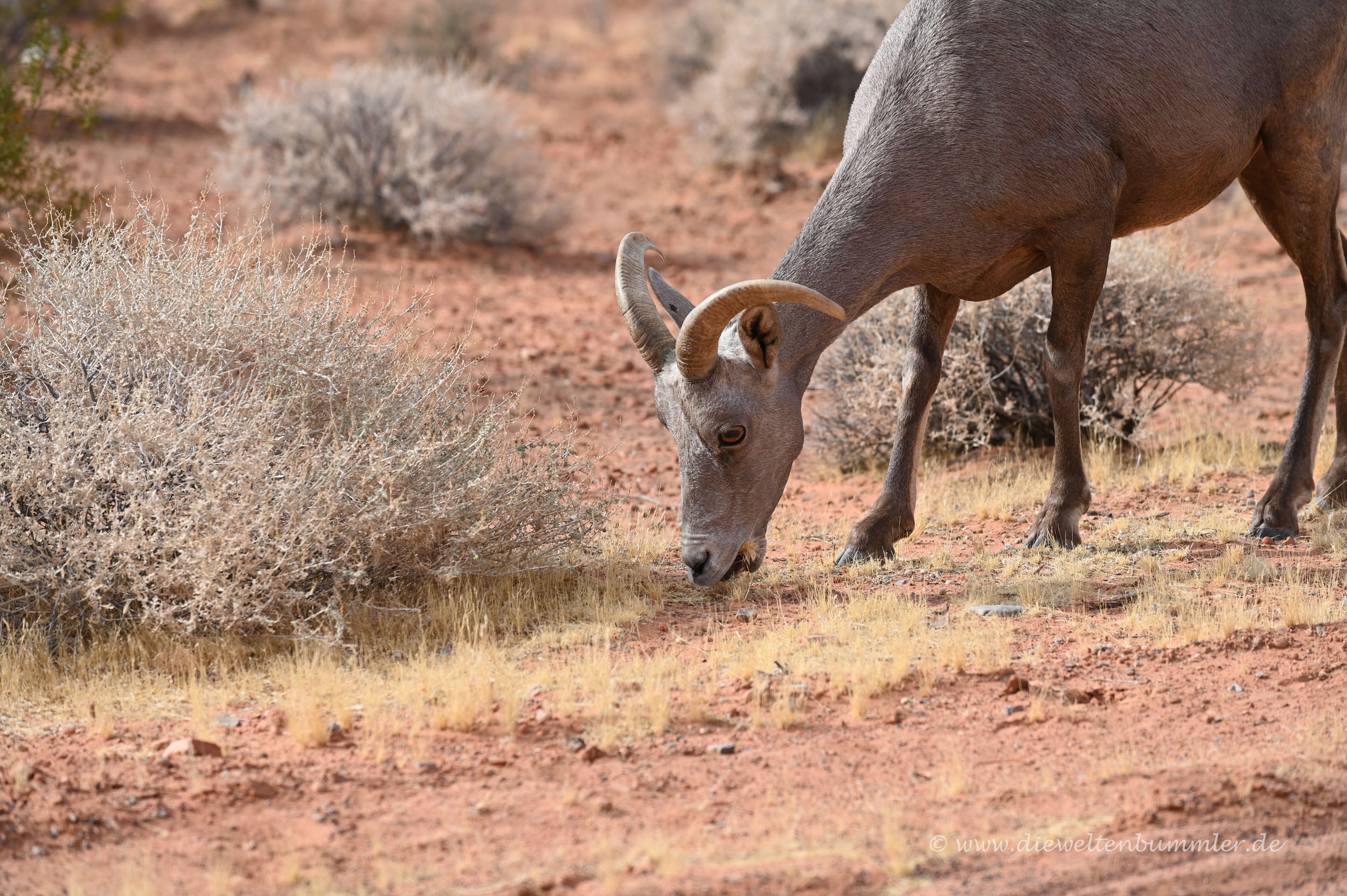 Als wir dort vor Ort waren, herrschte reges tierisches Treiben rund um das Besucherzentrum. Vorne am Parkplatz tummelte sich eine große Gruppe von Dickhornschafen, die wenig scheu an der Straße entlang spazierten.