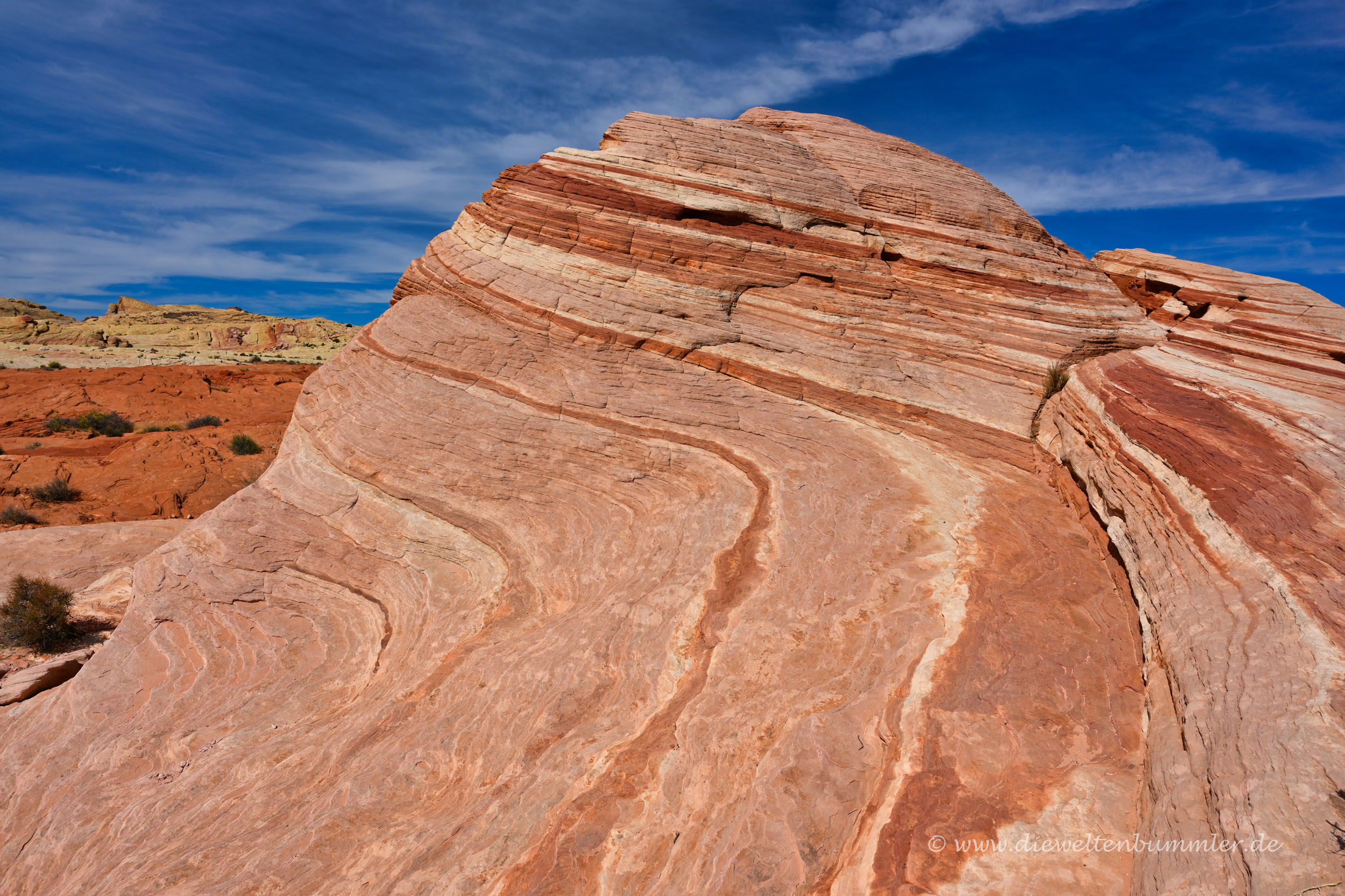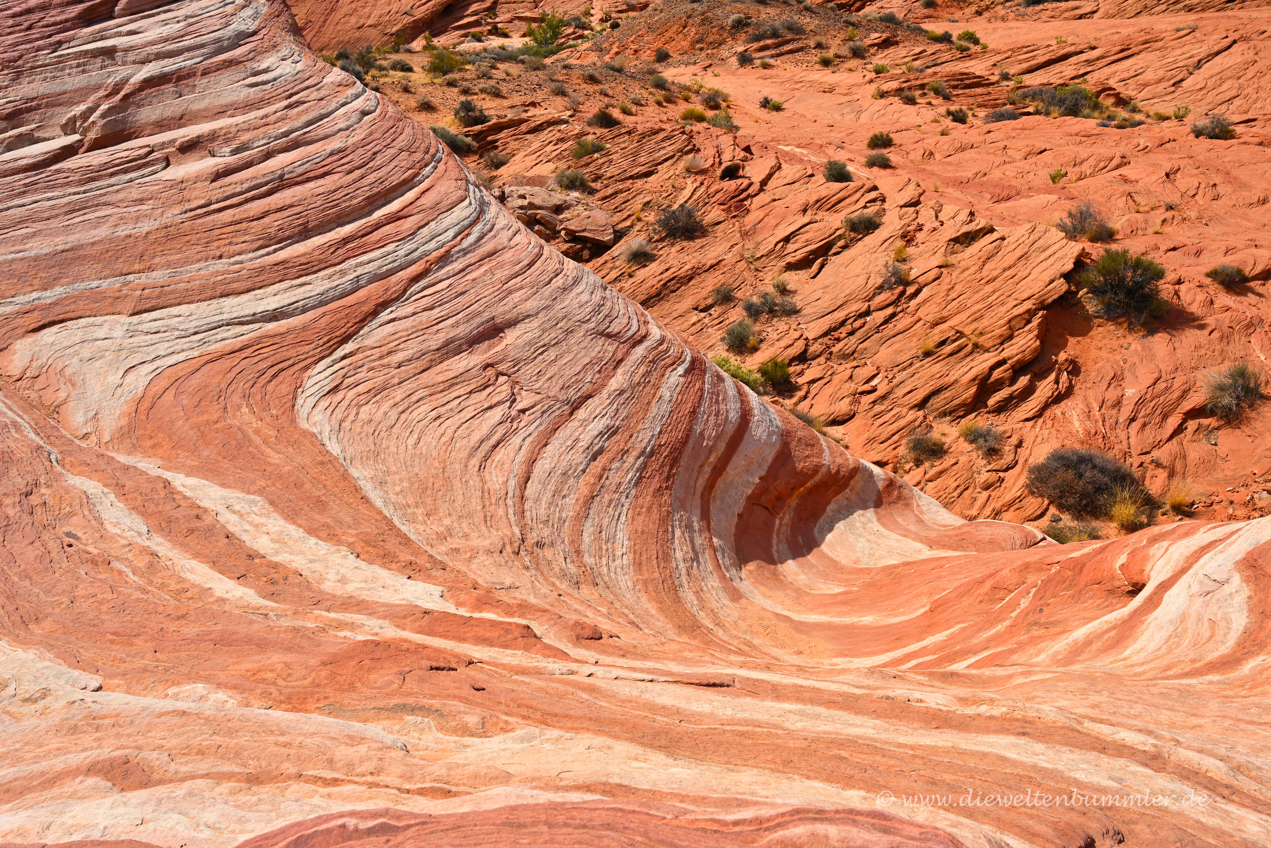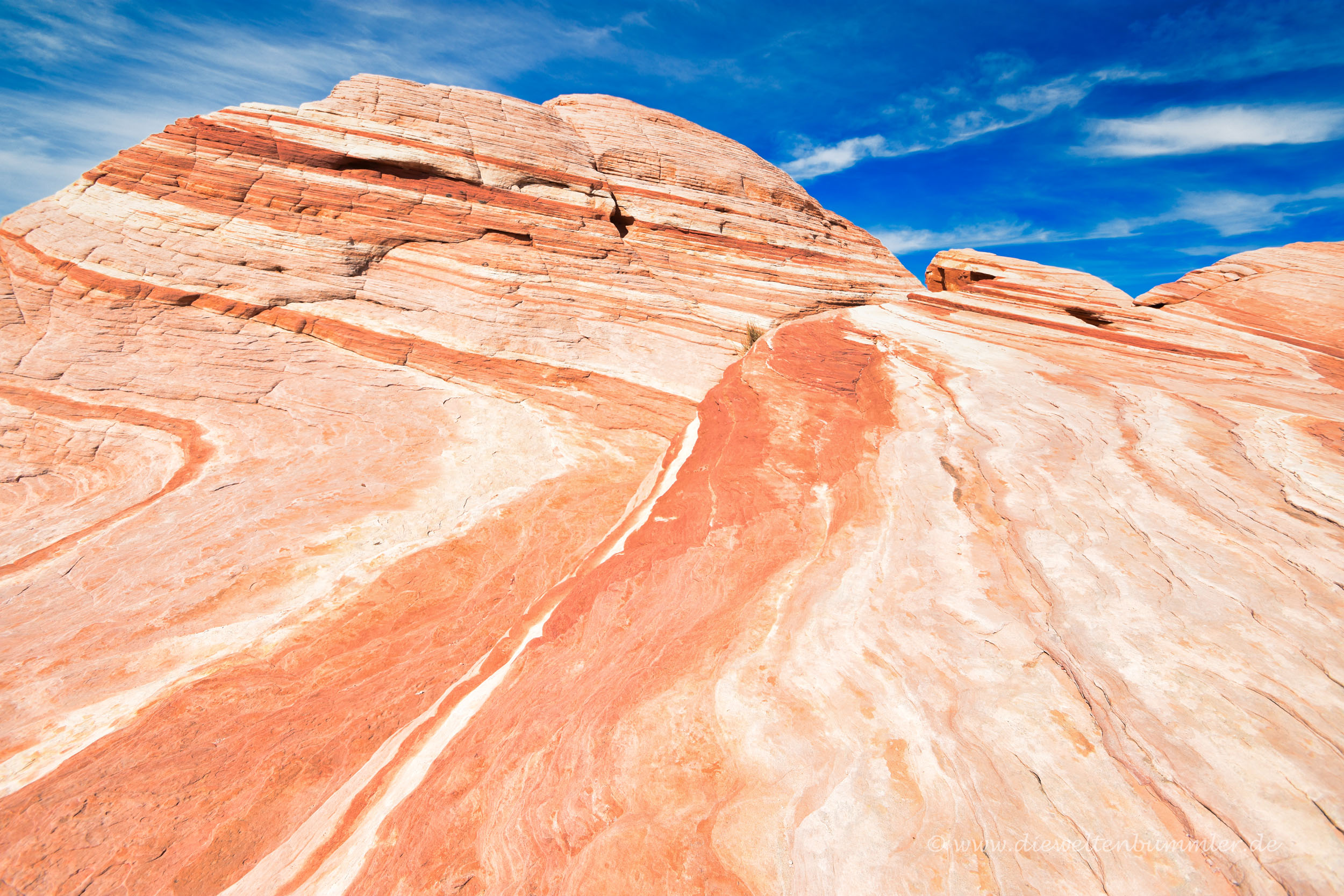 Da wäre zum einen die sogenannte Fire Wave und auch der White Dome. Um zur Fire Wave zu gelangen, muss man ein kleines bisschen wandern. Interessanterweise wandert man hier auf einer Einbahnstraße. Irgendwie knuffig, in einer endlos scheinenden Landschaft eine Einbahnstraße anzulegen.