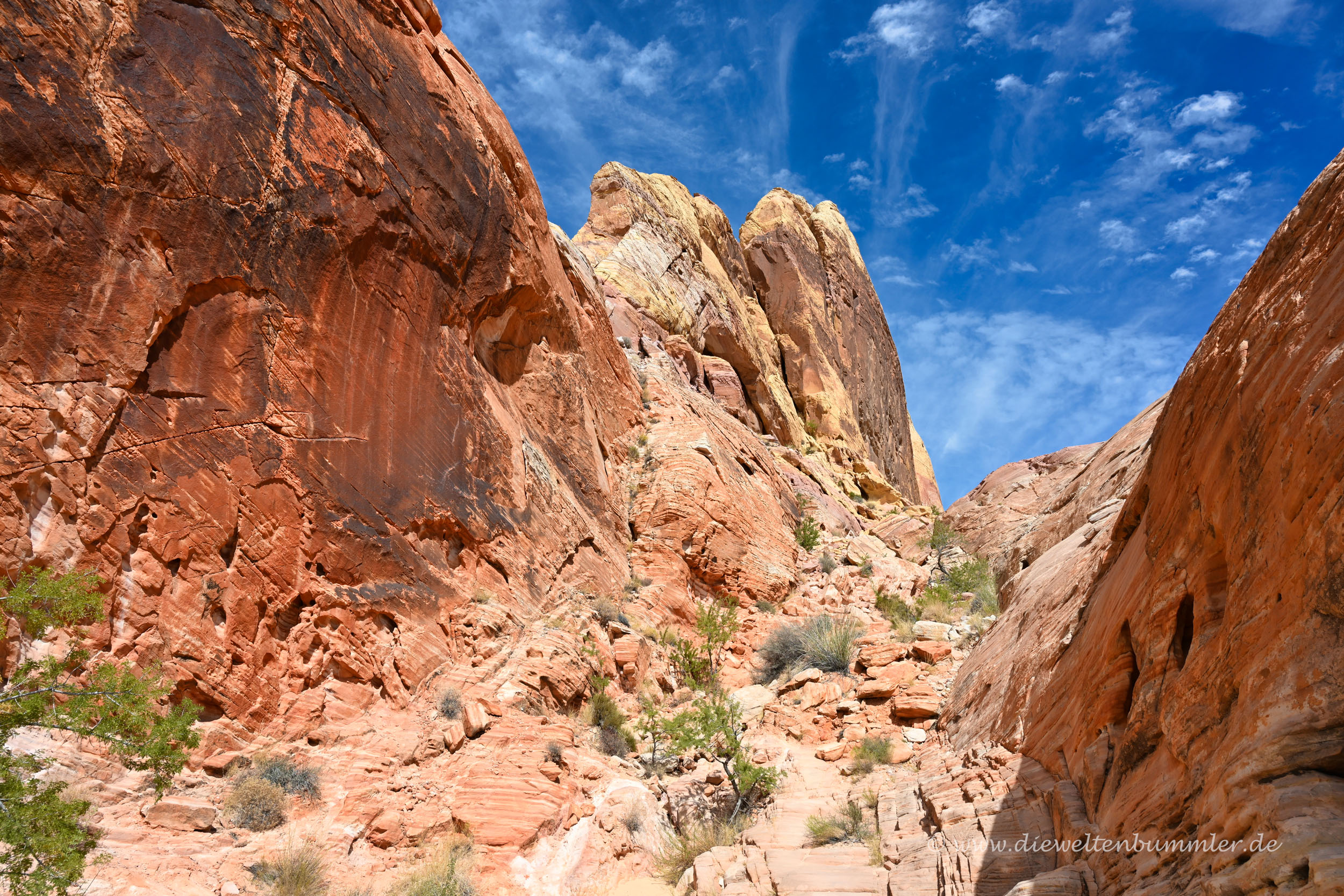 Zu den Sehenswürdigkeiten zählen zum Beispiel der Petroglyph Canyon, der am Mouse’s Tank endet und der Fire Canyon. Wir haben uns jedoch für die zwei Hauptsehenswürdigkeiten im Valley of Fire entschieden.