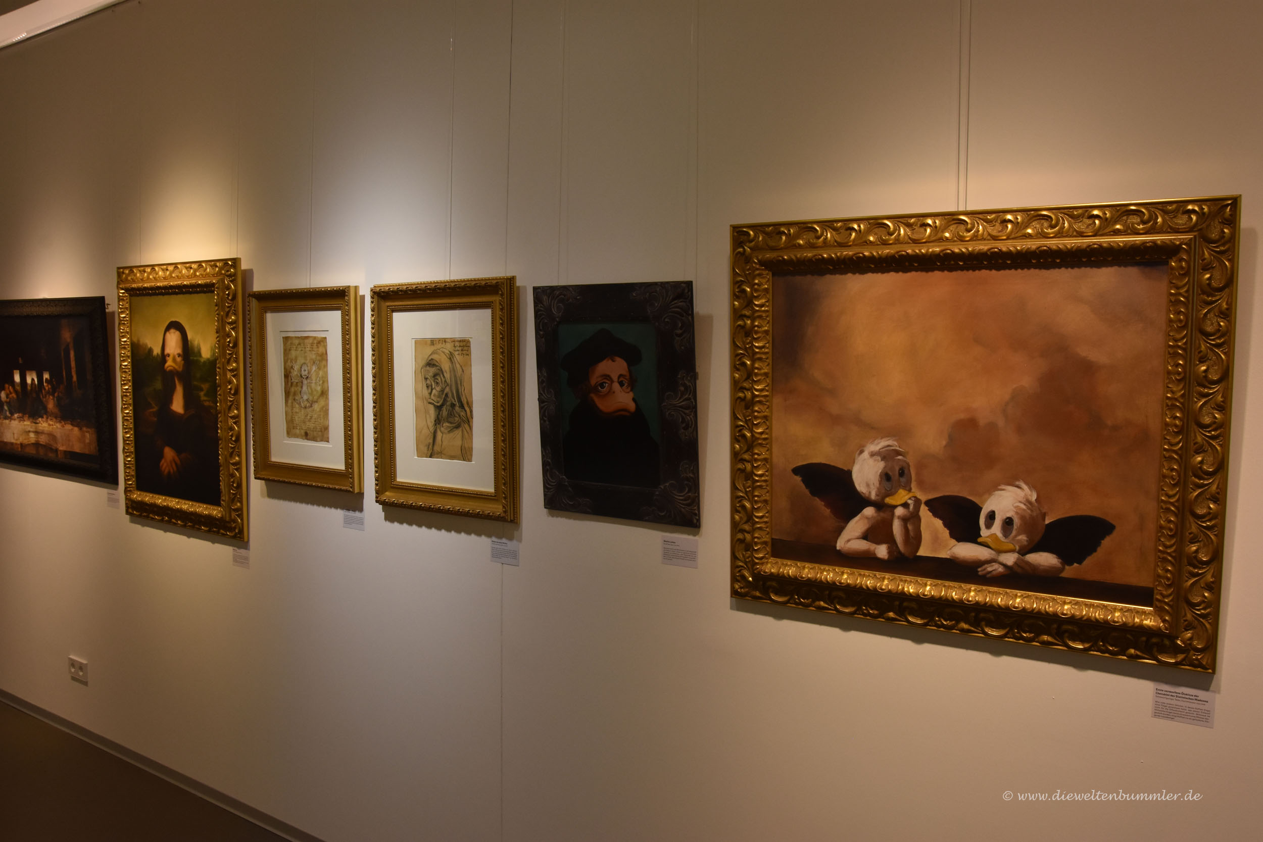 Wir hatten zudem Glück, dass während unseres Besuchs im Erika Fuchs-Haus auch gleichzeitig die Duckomenta stattfand. So begannen wir unseren Rundgang mit großem Staunen auf die Klassiker der Weltgeschichte. Diese Wanderausstellung zeigt die wahren Werke großer Künstler, die so Leute wie Vincent van Gogh, Leonardo da Vinci und wie sie nicht alle heißen, zu ähnlichen Gemälden inspiriert haben.