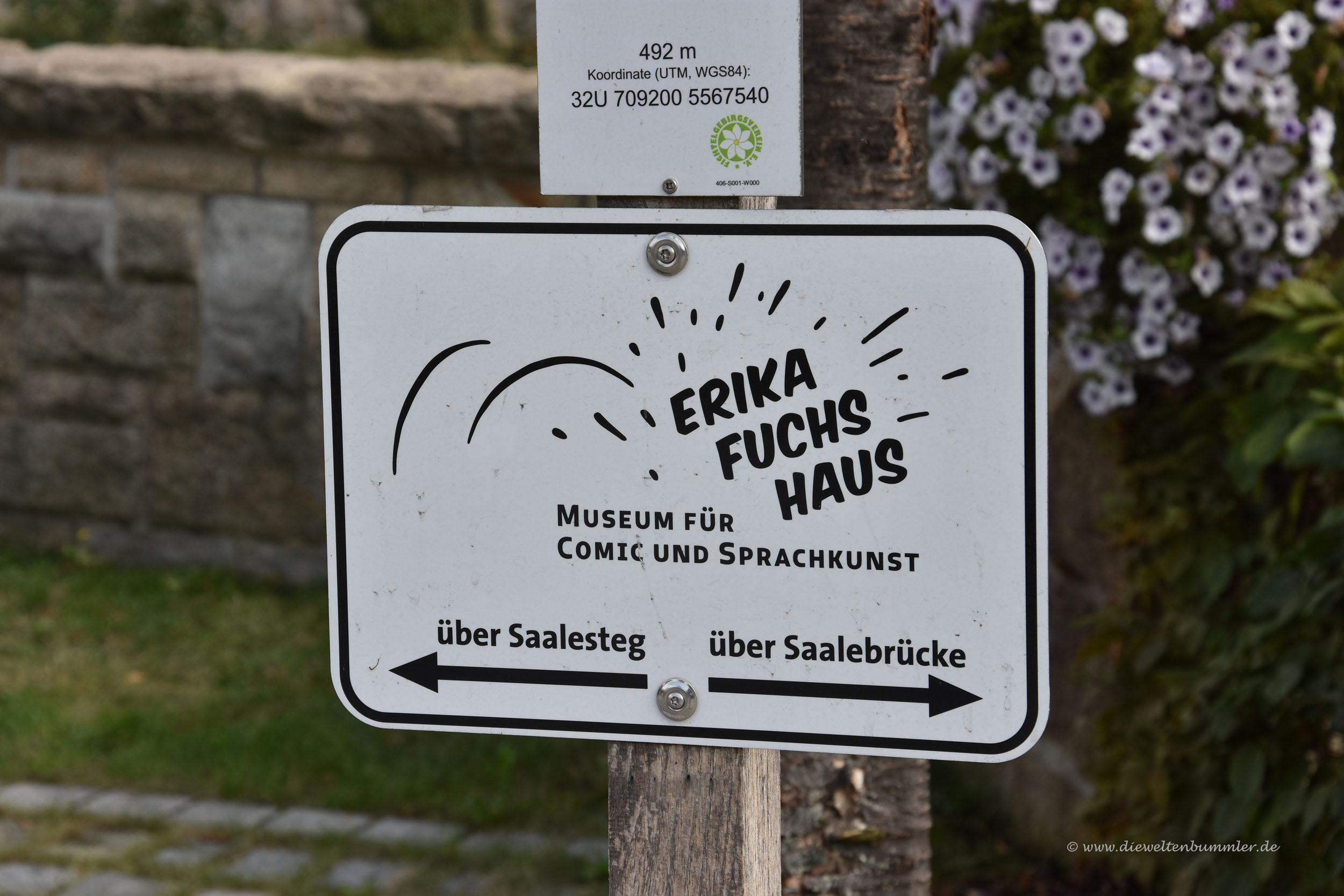 Und so waren wir nun in diesem Jahr während unserer Wohnmobiltour durch Deutschland auch in Oberfranken unterwegs. Dort stoppten wir unser Wohnmobil in Schwarzenbach an der Saale (brems) und spazierten zum Erika Fuchs-Haus.