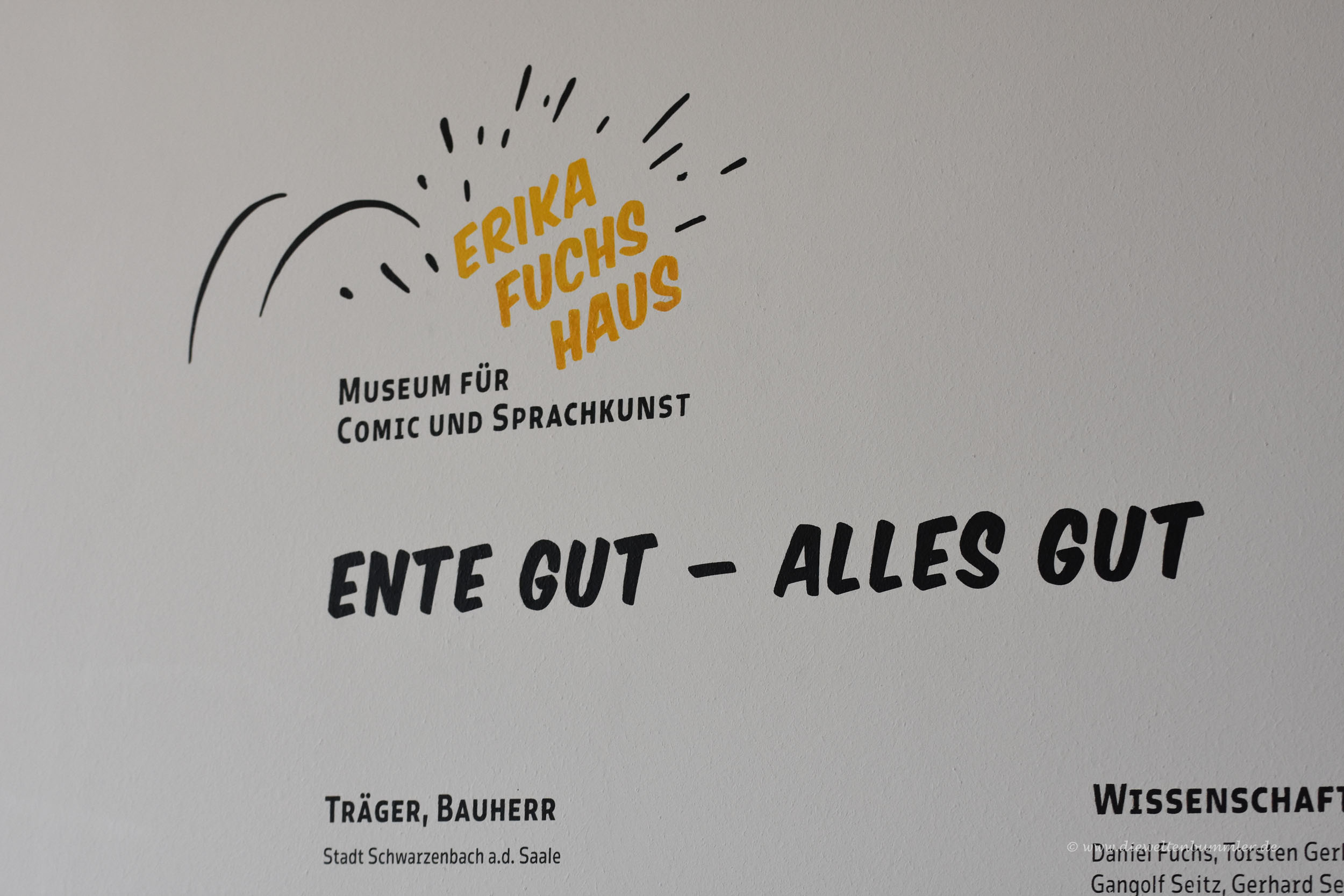 Ich will weder sitzen noch rumsumpfende Sumpfhühner bestarren. Ich will das Dr. Erika Fuchs-Haus besuchen. Das hätte ich am liebsten schon vor vielen, vielen Jahren gemacht. Aber damals gab es das noch nicht. Das Erika Fuchs-Haus wurde erst im Jahr 2015 eröffnet. Warum ich mir dann drei Jahre Zeit ließ, wenn es mir doch so wichtig war? Nun, das Erika Fuchs-Haus befindet sich in Schwarzenbach an der Saale. Für mich also leider nicht gleich um die Ecke. Seufz.