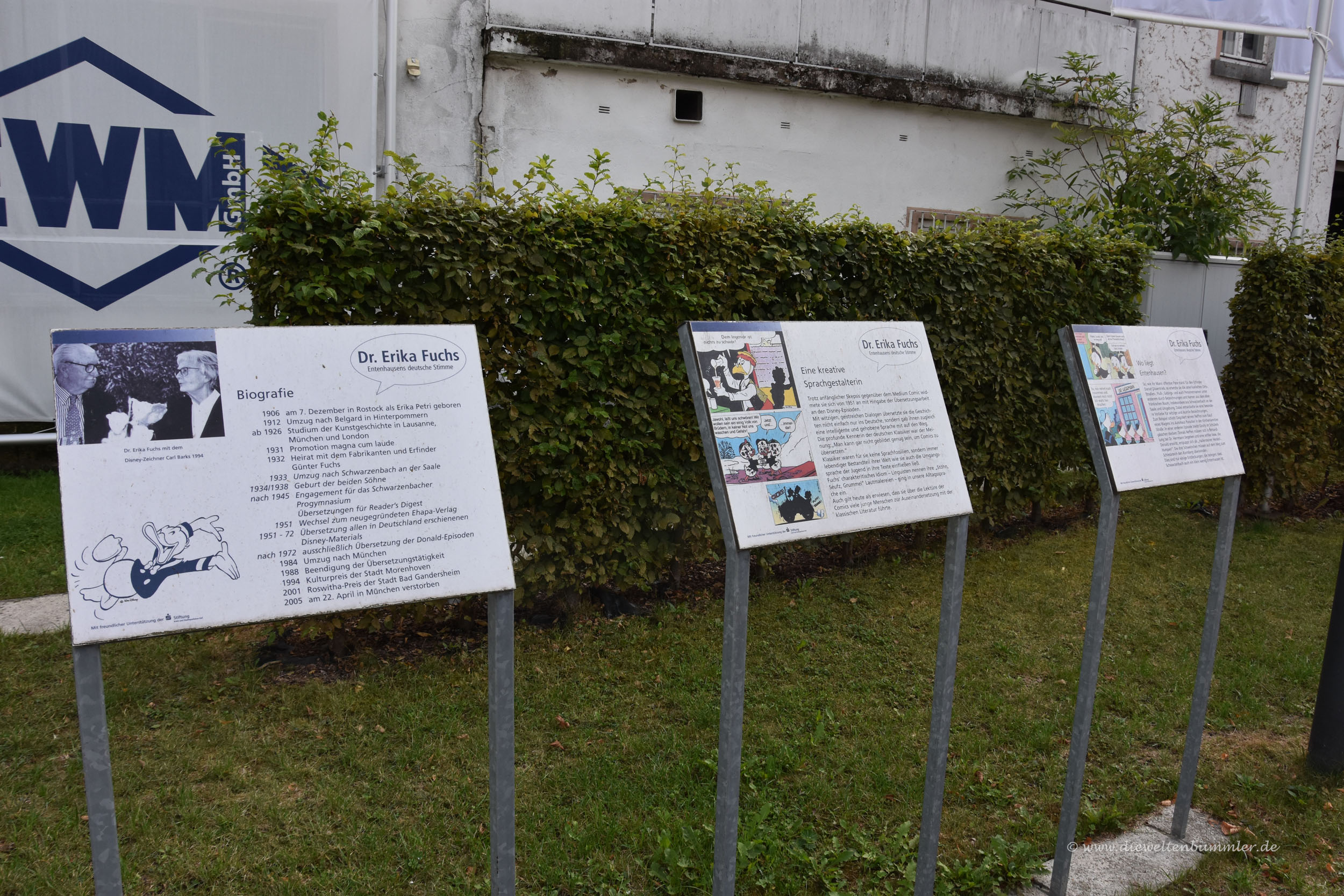 Bereits auf dem Rathausplatz wurden wir durch Info-Tafeln, die über das Wirken von Erika Fuchs berichten, gut eingestimmt.