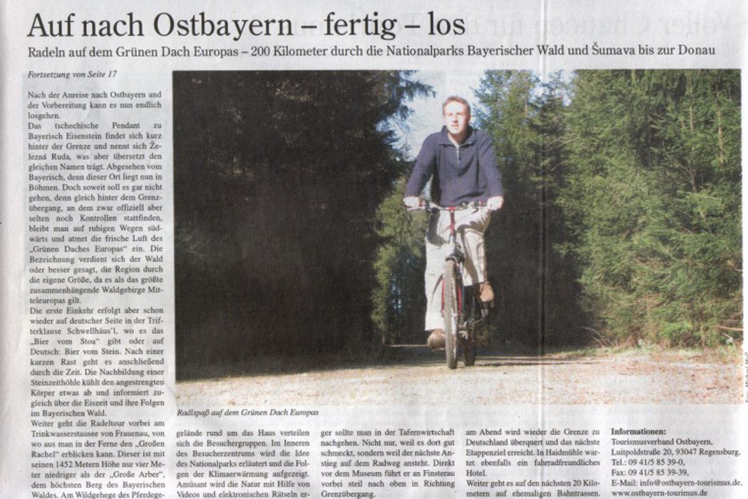 Mit dem Fahrrad durch Ostbayern inklusive einem Empfang durch die dortigen Bürgermeister. Daraus entstand der folgende Zeitungsartikel, der bei einem Journalistenwettbewerb den siebten Platz erreichte und in der Prager Zeitung abgedruckt wurde.
