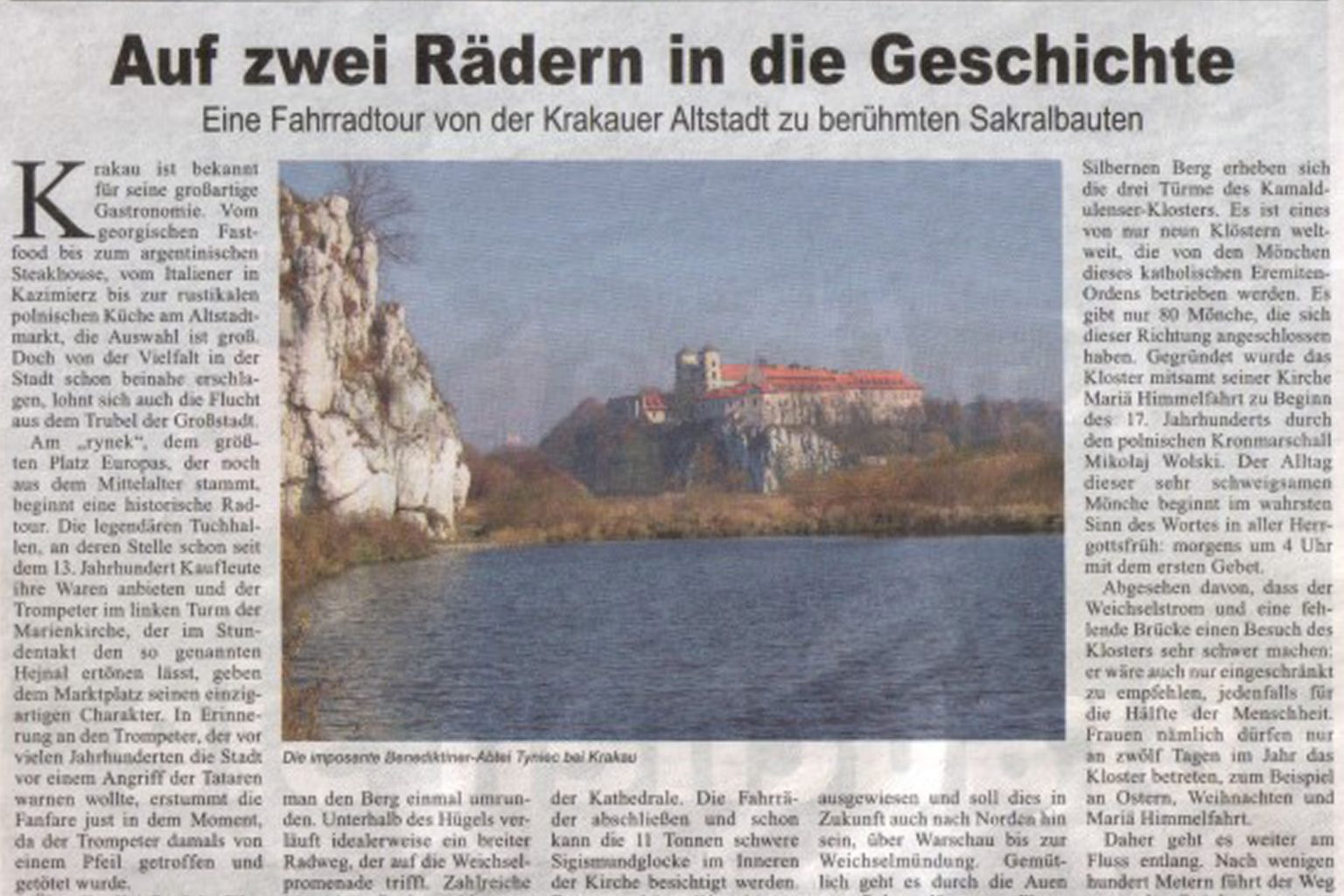 In der polen-rundschau, die in Warschau erscheint, wurde mein folgender Zeitungsartikel abgedruckt, der eine Radtour entlang der Weichsel bei Krakau beschreibt.