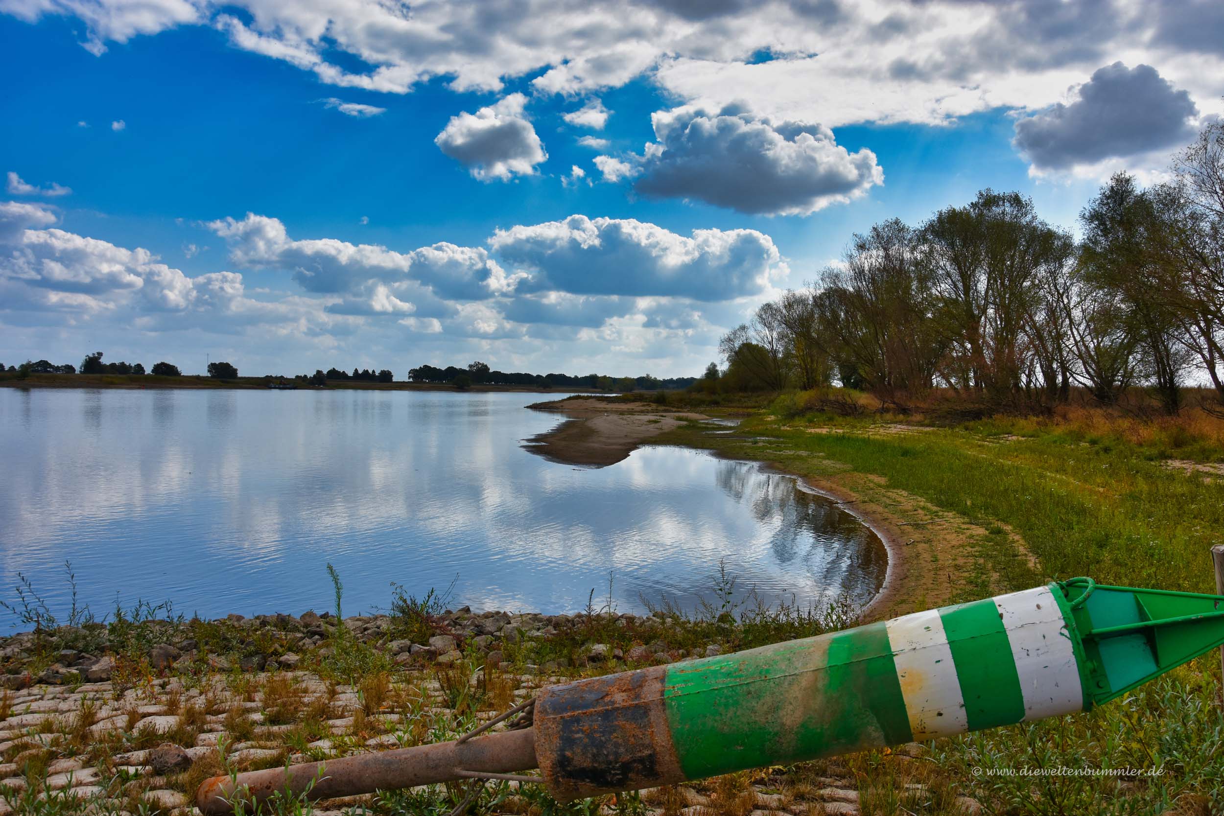 Wie auch schon beim anderen Dreiländereck, so gibt es auch am Dreiländereck von Niedersachsen, Brandenburg und Sachsen-Anhalt nicht wirklich viel zu sehen. Es ist weiterhin eine schöne ruhige Flusslandschaft und es gibt natürlich auch hier keine Markierung zu sehen. Weder am Ufer und noch viel weniger natürlich auf dem Wasser.