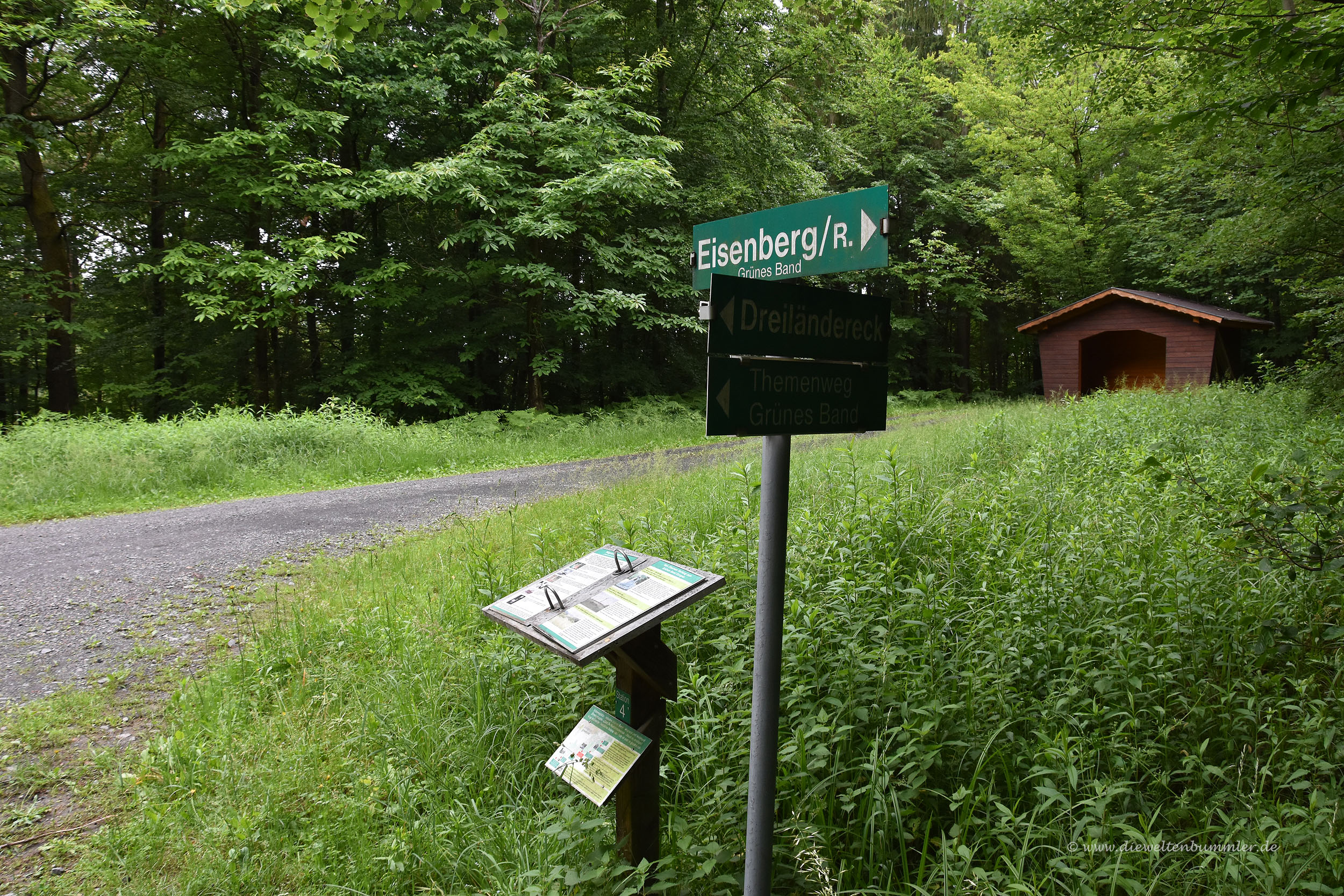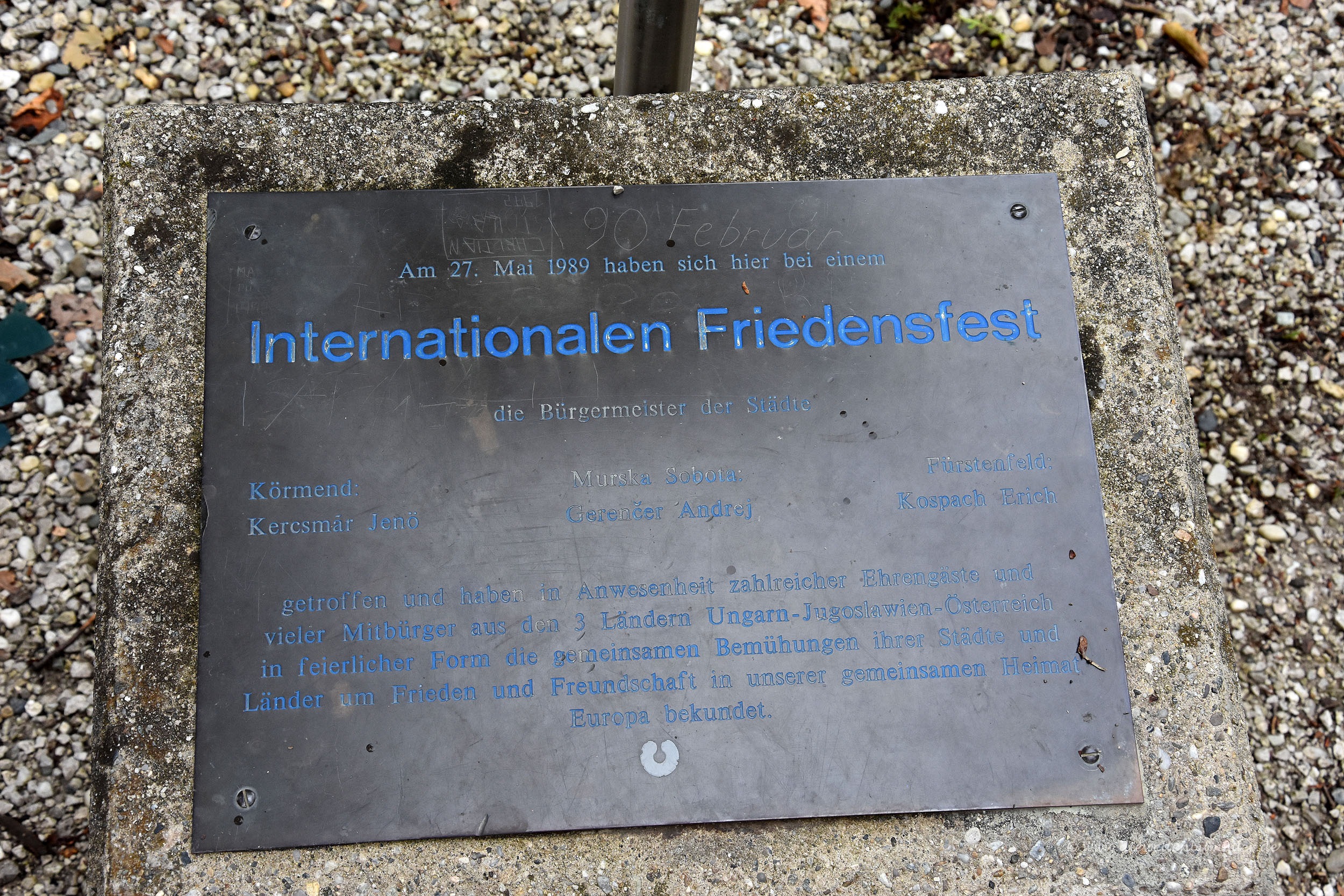 Eine Tafel erinnert daran, dass die drei angrenzenden Bürgermeister bereits im Sommer 1989 ihre Freundschaften betonten und damit ein Zeichen für ein geeintes Europa setzen wollten. Wenige Wochen später fiel der Eiserne Vorhang. Heute ist es nicht mehr Jugoslawien, das an diesen Punkt stößt, sondern eben Slowenien und das Dreiländereck befindet sich damit am sogenannten Grünen Band, das nun einmal quer durch Europa verläuft. Ganz nebenbei ist es auch noch der westlichste Punkt von Ungarn, also einer der ungarischen Extrempunkte.