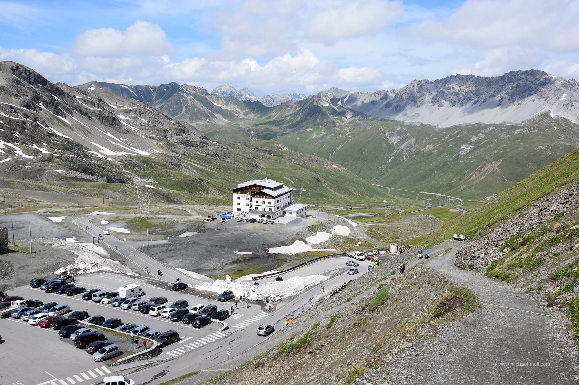 Zu erreichen ist die Dreisprachenspitze ziemlich einfach, wobei diese Aussage relativ ist. Zunächst mal muss man das Stilfser Joch erreichen. Parkplätze gibt es dort genügend, aber die Auffahrt auf eine Seehöhe von über 2.700 Metern ist natürlich schon ein wahres Erlebnis. Auf Südtiroler Seite durchquert man dabei 47 Spitzkehren und überwindet ab Trafoi, dem letzten Ort vor dem Passübergang 1.200 Höhenmeter. Im Blog habe ich eine genaue Beschreibung zum Stilfser Joch geschrieben.