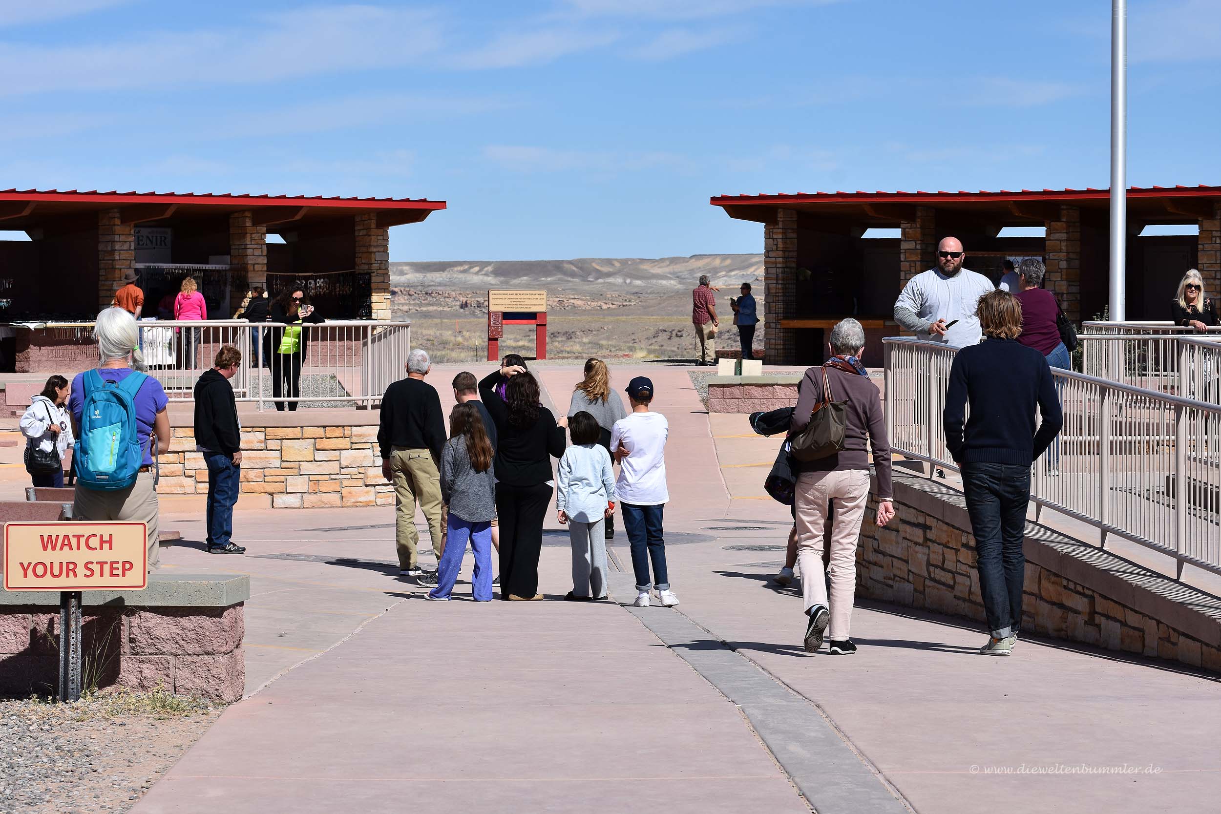 Auf jeder Seite des Vierländerecks gibt es ein längliches Haus, die genauso zueinander stehen, als würden sie ein Quadrat bilden wollen. In diesen Häusern sind Souvenirstände untergebracht, in denen die Navajos ihr Kunsthandwerk und Andenken verkaufen.